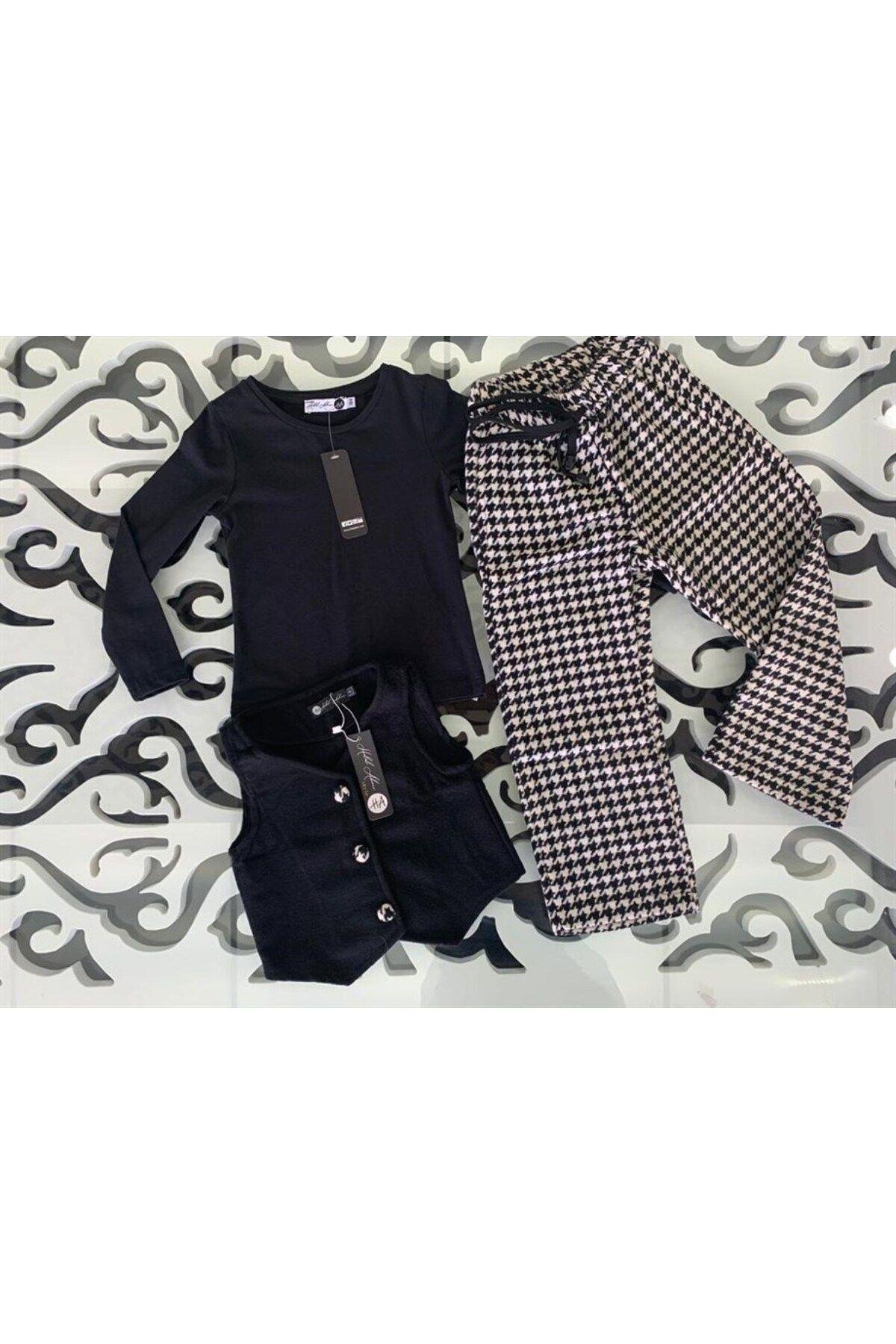 Kız Çocuk Kaşe Yelek Siyah Badi Kazayağı Model Pantolon Üçlü Takım Kız Çocuk Kaşe Yelek Siyah Badi Kazayağı Model Pantolon Üçlü Takım VK0070 14 Yaş