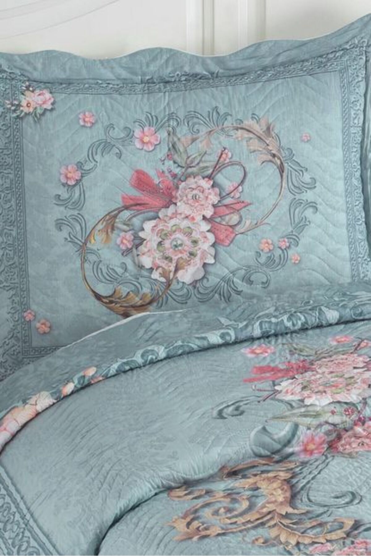 Alice Çift Kişilik Kapitone Yatak Örtüsü Takımı - Mavi Alice Çift Kişilik Kapitone Yatak Örtüsü Takımı - Mavi YÖÇK111 تک سایز