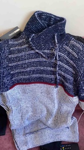 Erkek Gri Lacivert Şal Yaka Göğüs Çizgili Triko Kazak Erkek Gri Lacivert Şal Yaka Göğüs Çizgili Triko Kazak TRZ7509 L