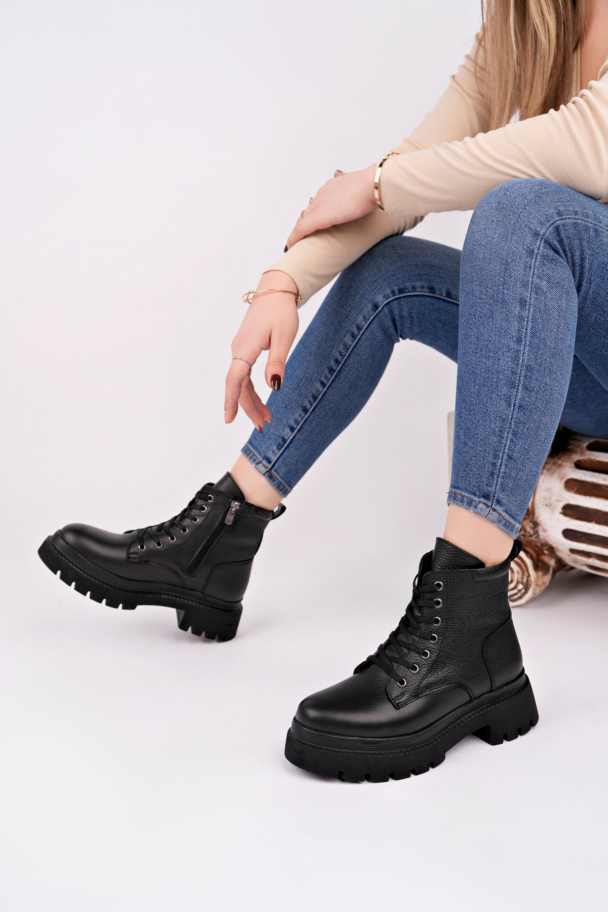 Hakiki Deri Siyah Kadın Tırtıklı Taban Deri Postal Bot TRC-216574 Hakiki Deri Siyah Kadın Tırtıklı Taban Deri Postal Bot TRC-216574 40