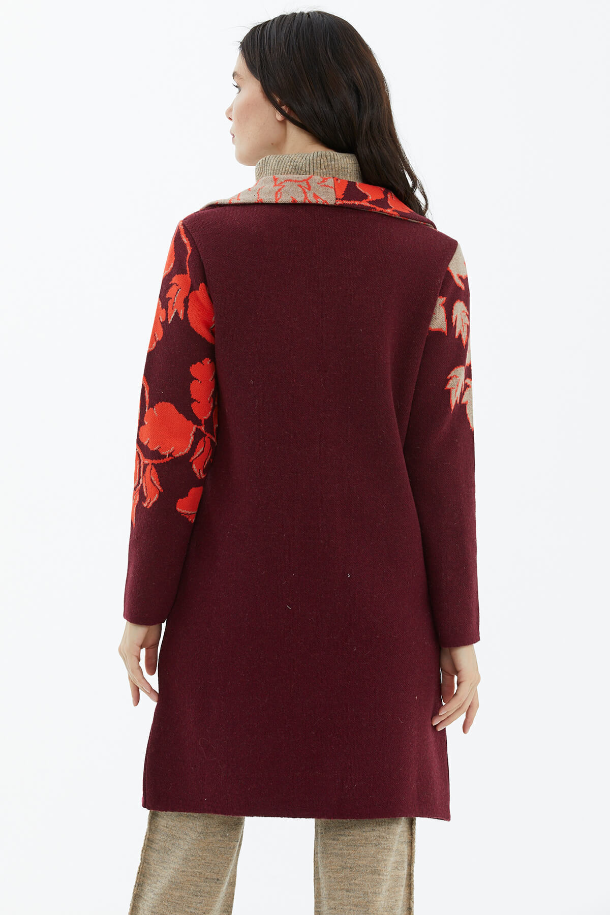 Geniş Polo Yaka Desenli Triko Hırka - Bordo Geniş Polo Yaka Desenli Triko Hırka - Bordo 21K2112-34357.0001-R1802 L
