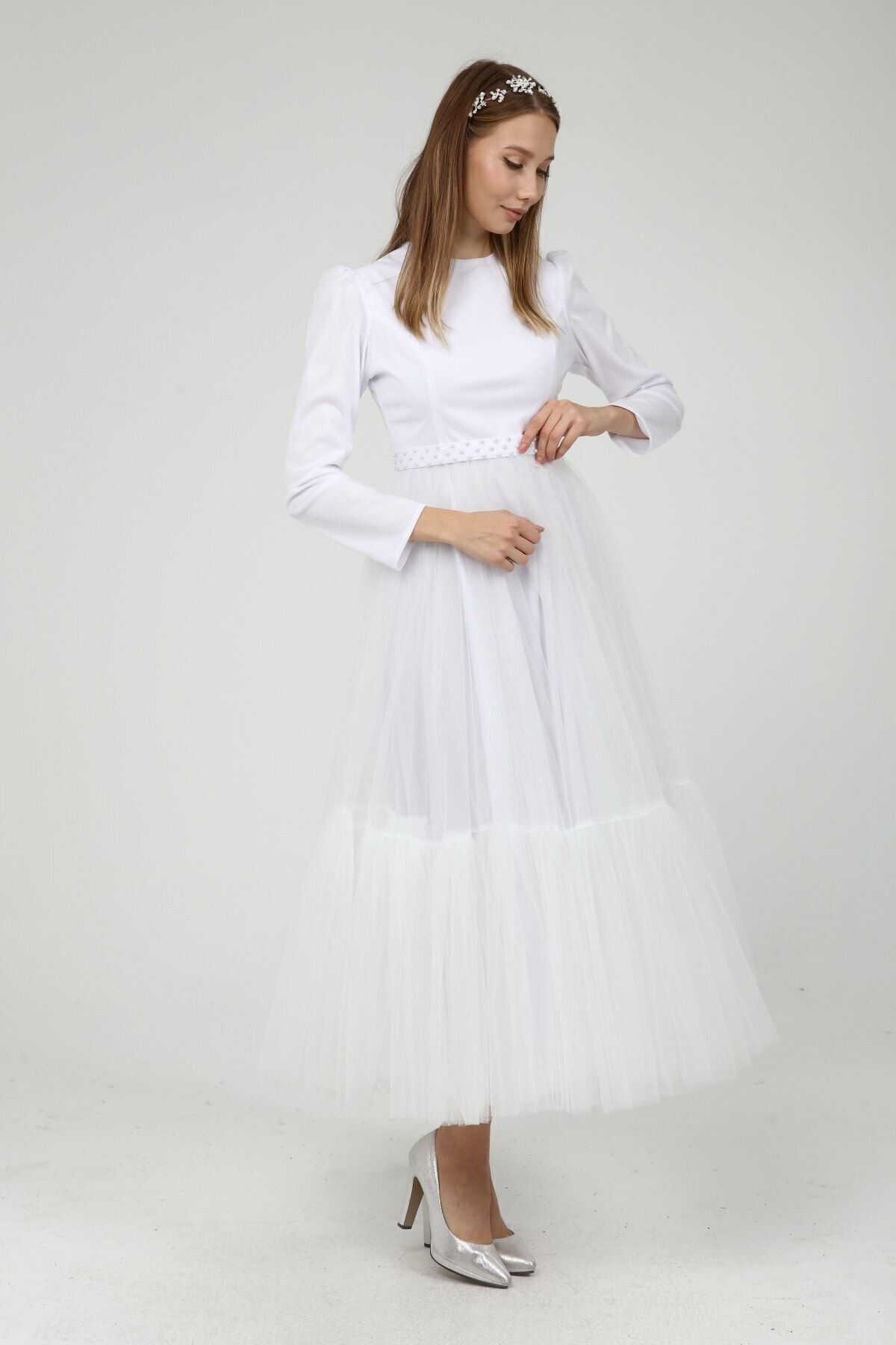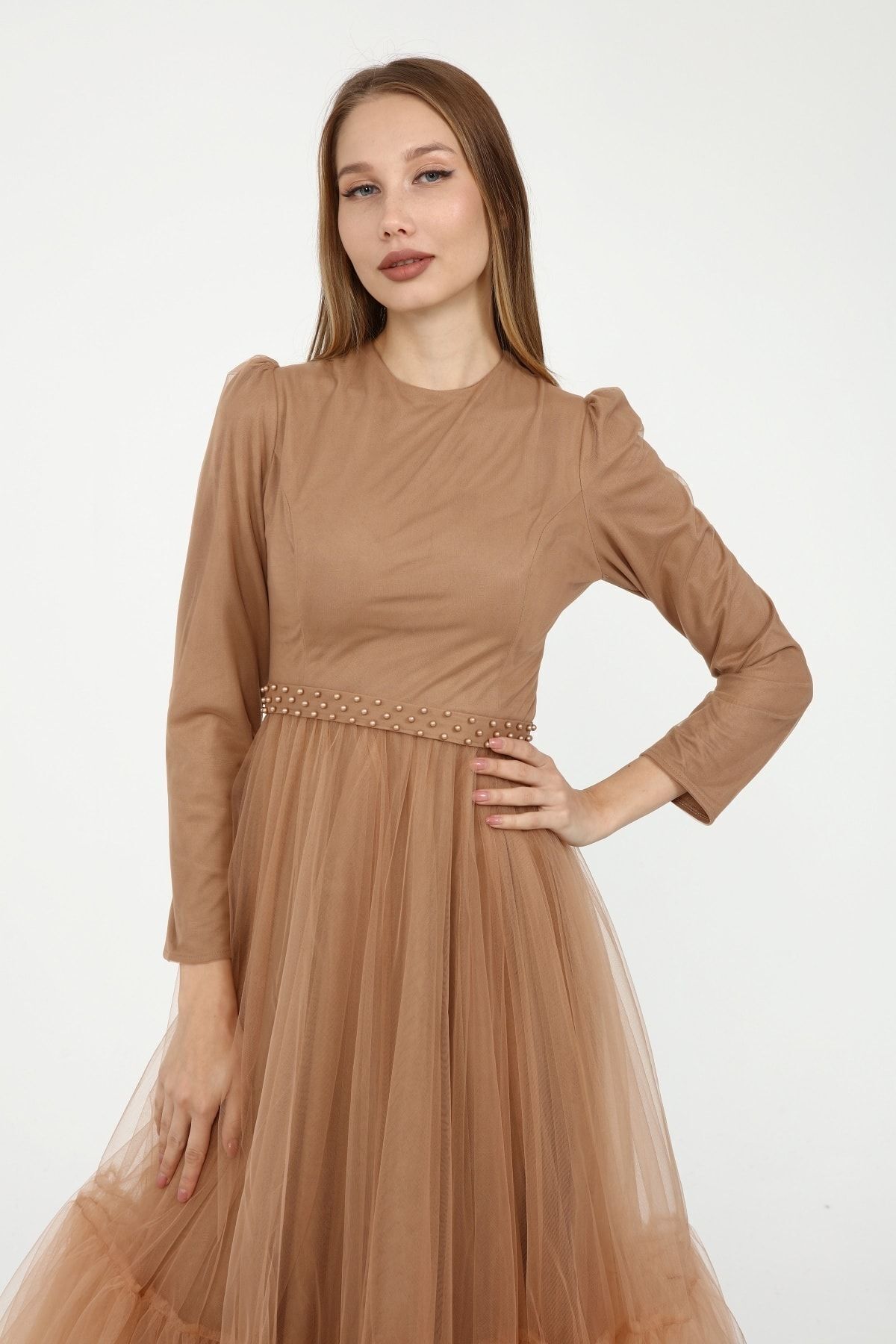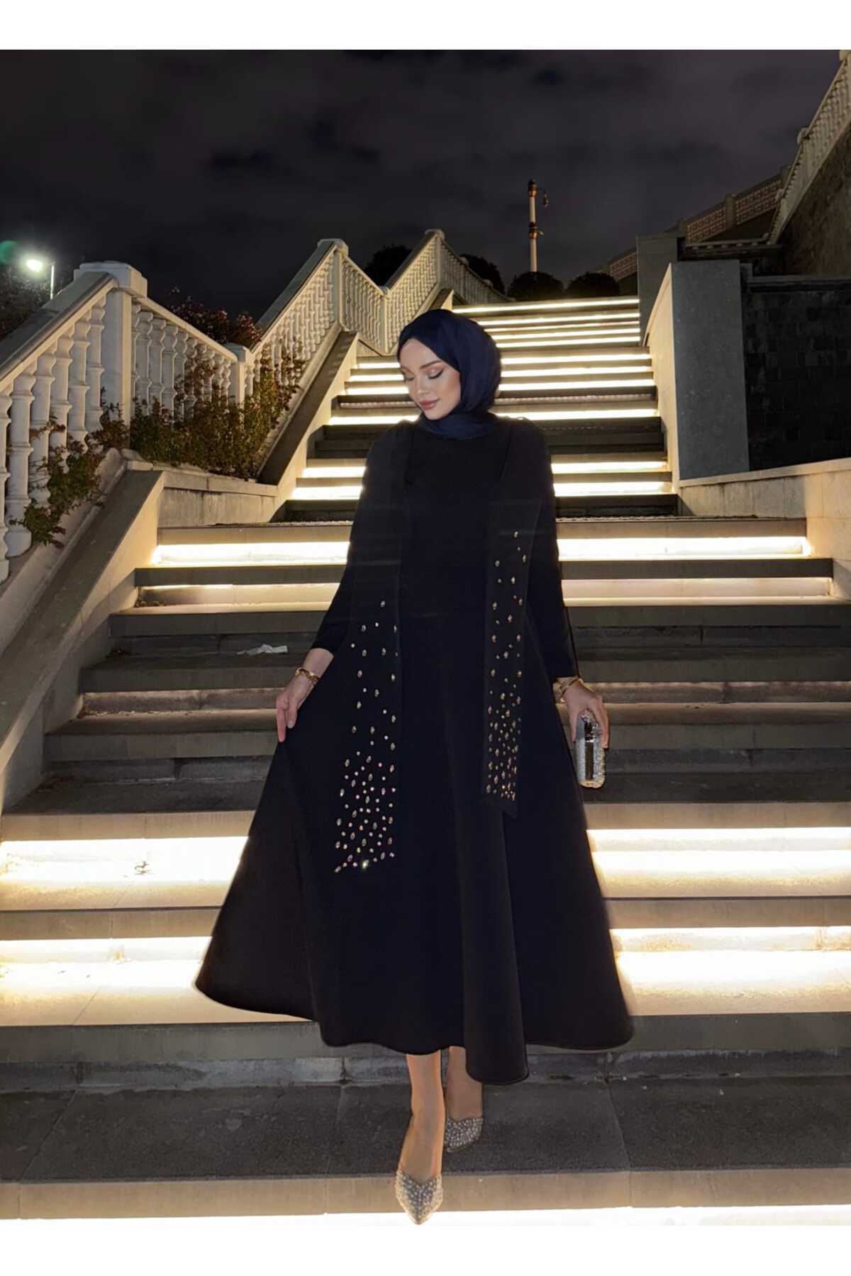 Kemeri Incili Tesettür Tül Abiye Elbise Kemeri Incili Tesettür Tül Abiye Elbise 80059 44