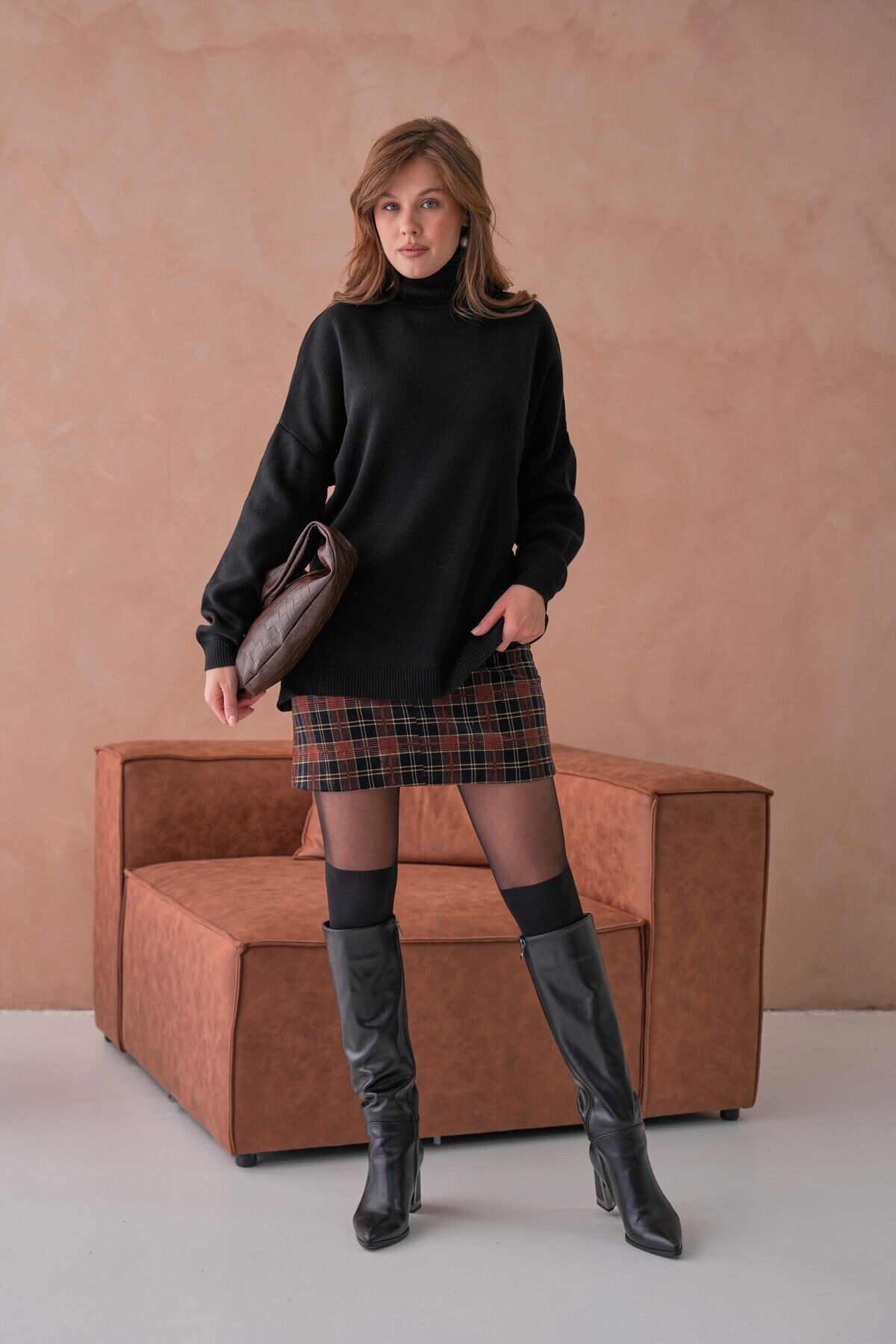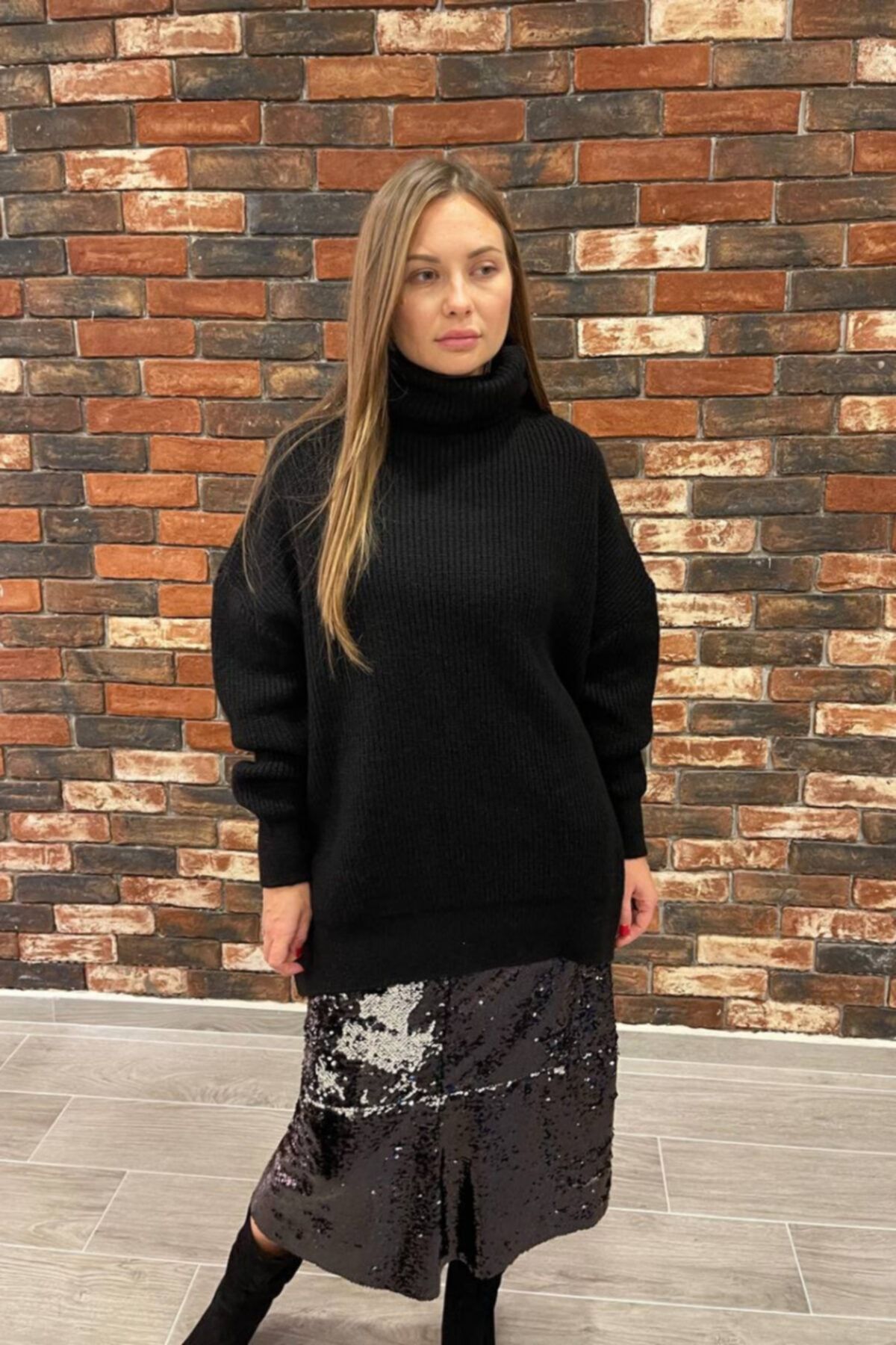 Boğazlı Oversize Kazak Siyah Boğazlı Oversize Kazak Siyah ADKLMR56 Standart