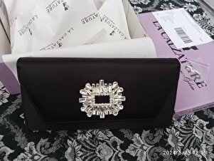 Siyah Saten Taşlı Aksesuarlı Portföy Kadın Zarf Çanta Siyah Saten Taşlı Aksesuarlı Portföy Kadın Zarf Çanta LA-monalisa تک سایز