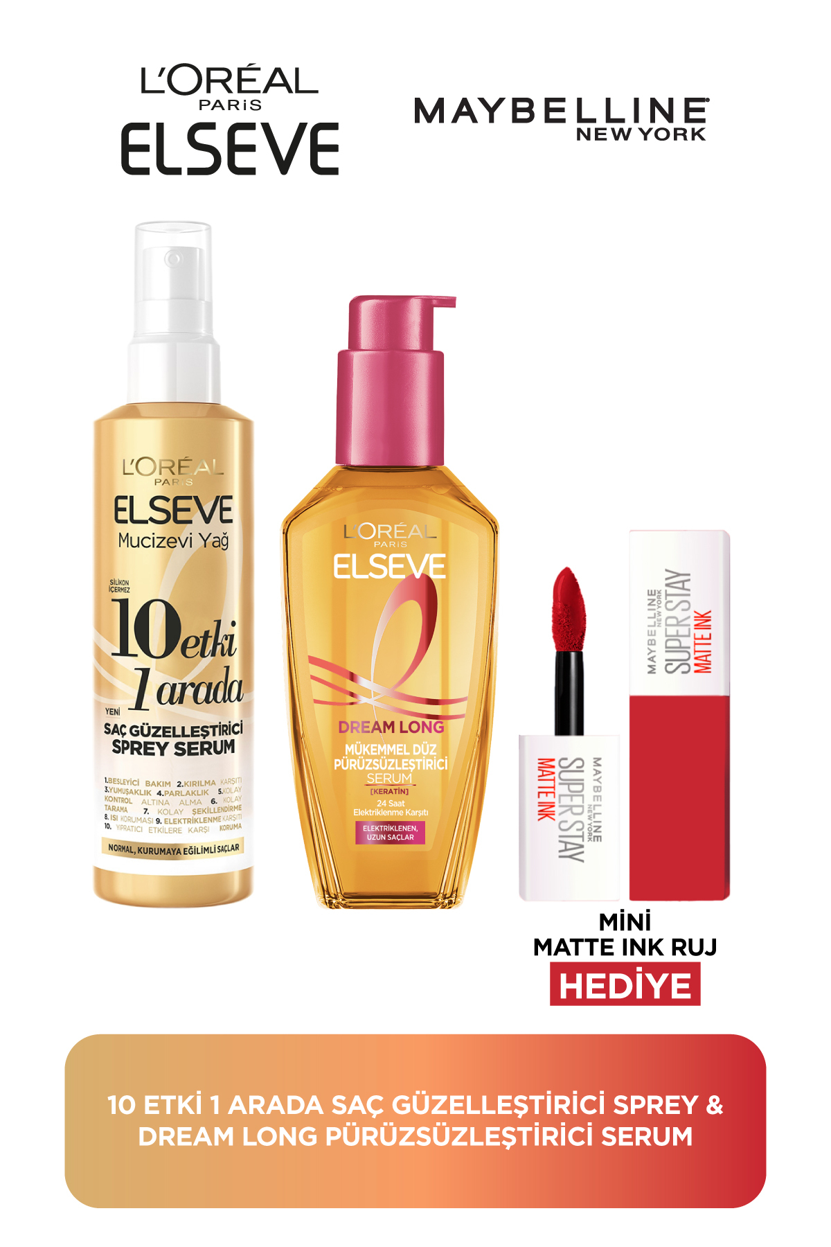 Dream Long Düz Pürüzsüzleştirici Serum + Isıya Karşı Koruyucu Sprey + Curl Bounce Mini Mascara Dream Long Düz Pürüzsüzleştirici Serum + Isıya Karşı Koruyucu Sprey + Curl Bounce Mini Mascara PKTKMPLONRCSTRJ تک سایز
