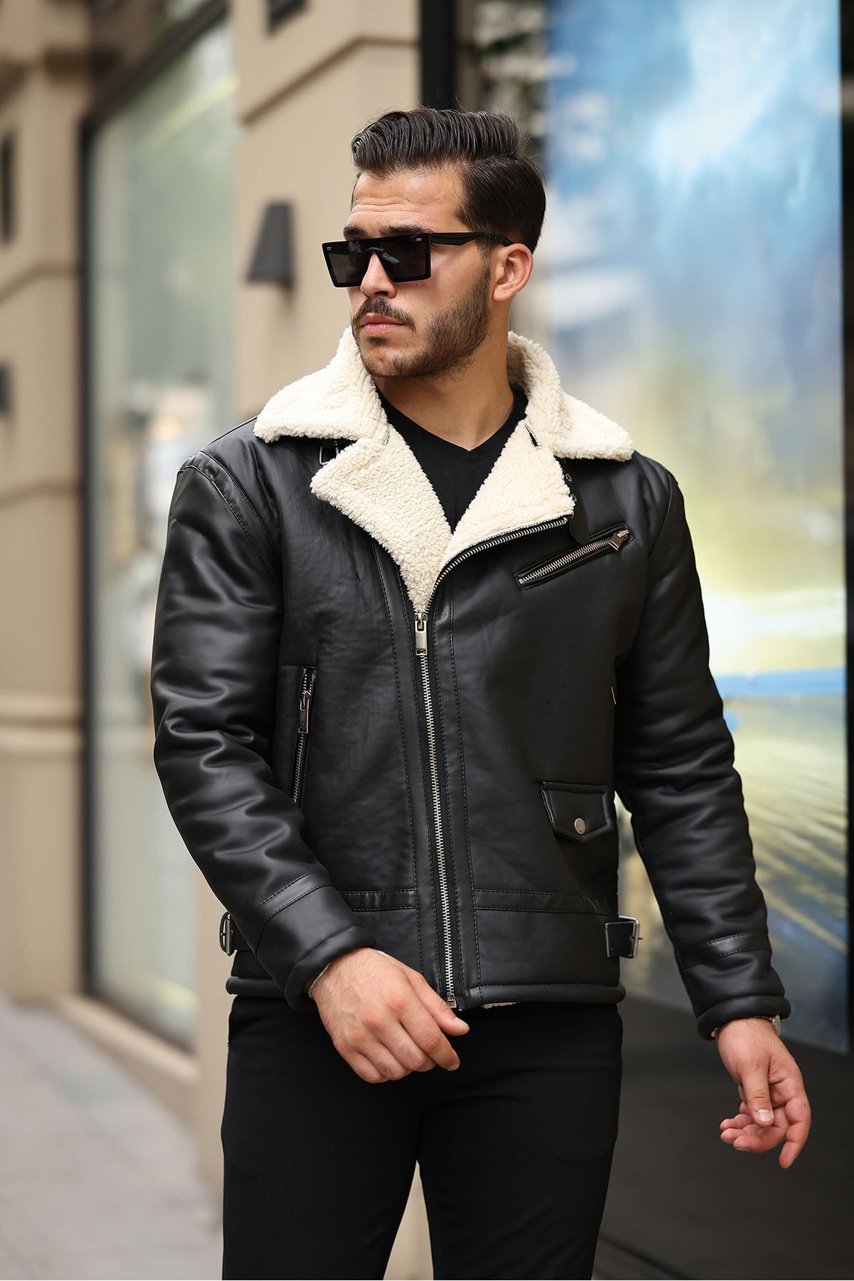 Erkek Siyah Çıkarılabilir Yaka Kürklü Çapraz Model Slim Fit Deri Ceket Mont Erkek Siyah Çıkarılabilir Yaka Kürklü Çapraz Model Slim Fit Deri Ceket Mont DvrKuzeyKürklü 2XL
