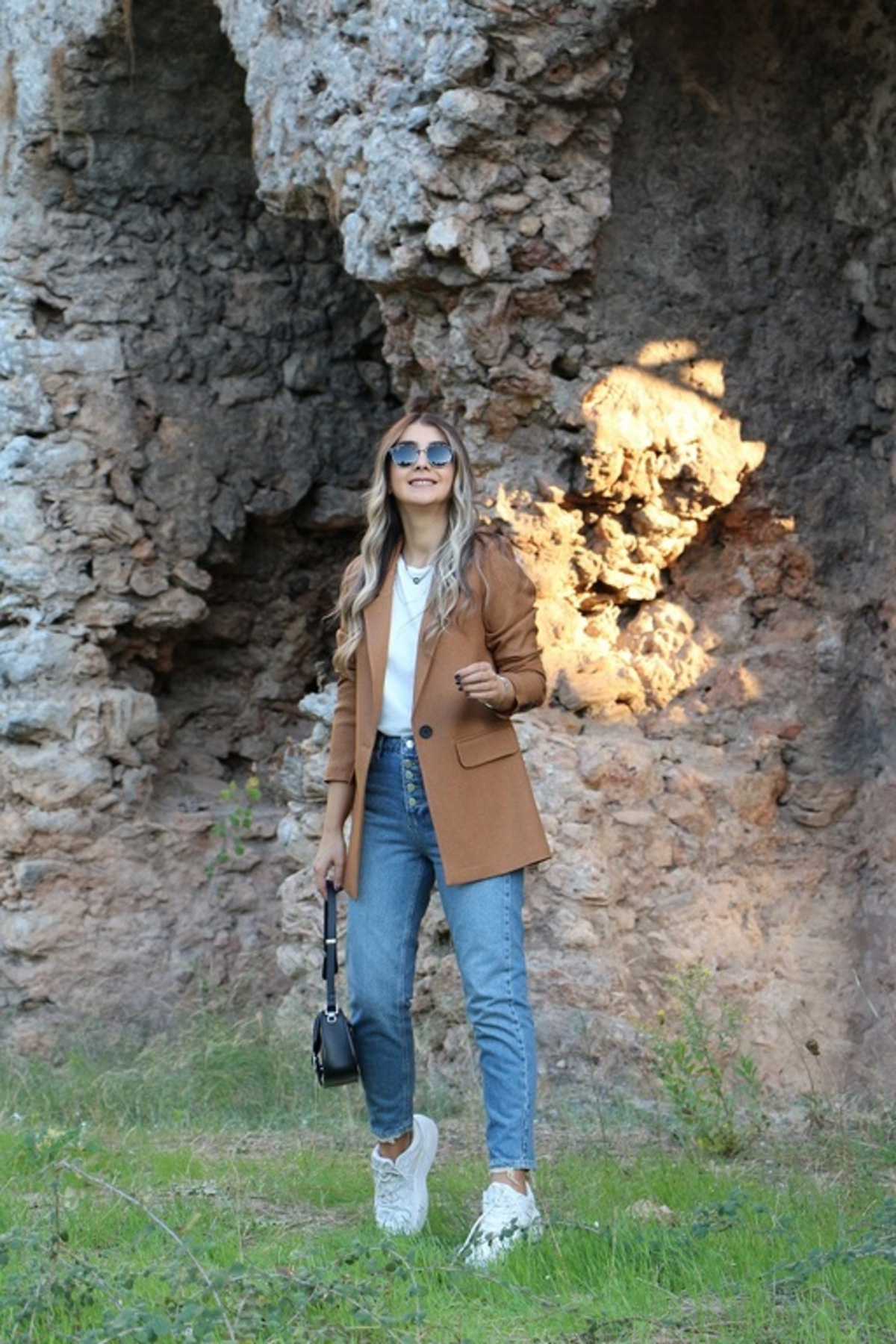 Kahve Yün Efekt Blazer Kahve Yün Efekt Blazer 3645 L
