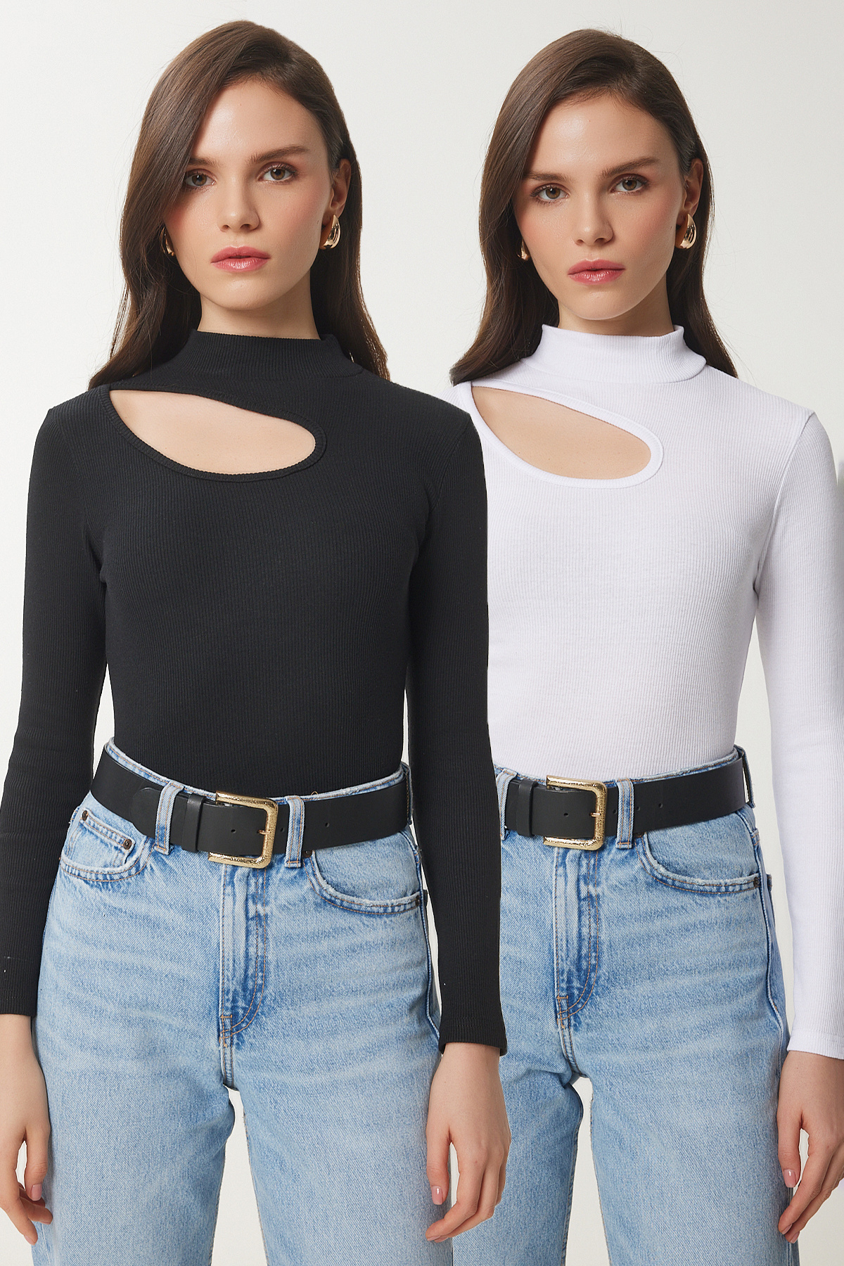 Kadın Beyaz Cut Out Detaylı Fitilli Örme Bluz GT00065 Kadın Beyaz Cut Out Detaylı Fitilli Örme Bluz GT00065 M