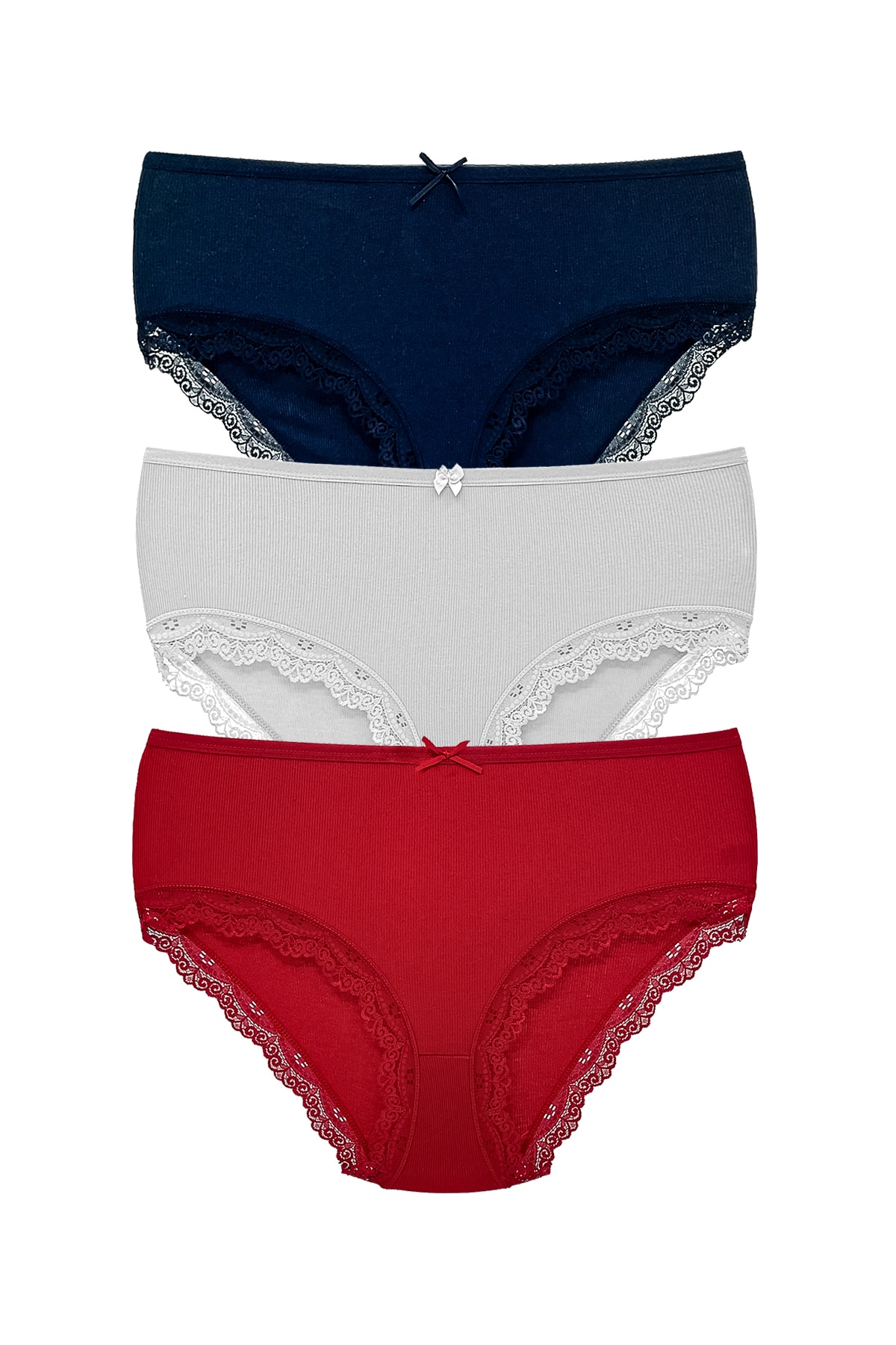 3'lü Kaşkorse Paçası Dantel Detaylı Yüksek Bel Büyük Beden Bato Kadın Külot 3'lü Kaşkorse Paçası Dantel Detaylı Yüksek Bel Büyük Beden Bato Kadın Külot KU5840-01 3XL