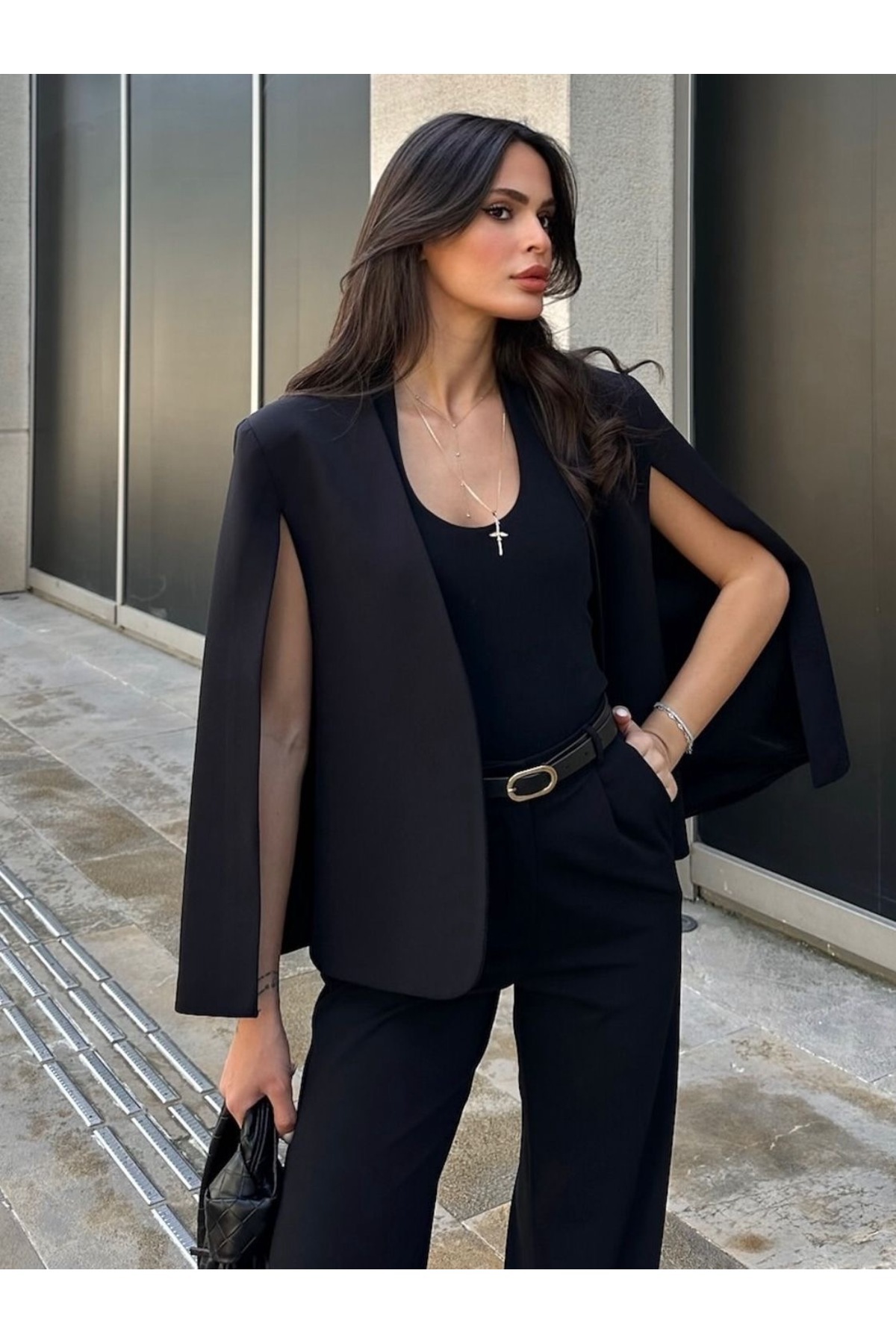 Siyah Pelerin Ceket Siyah Pelerin Ceket NFL855 46