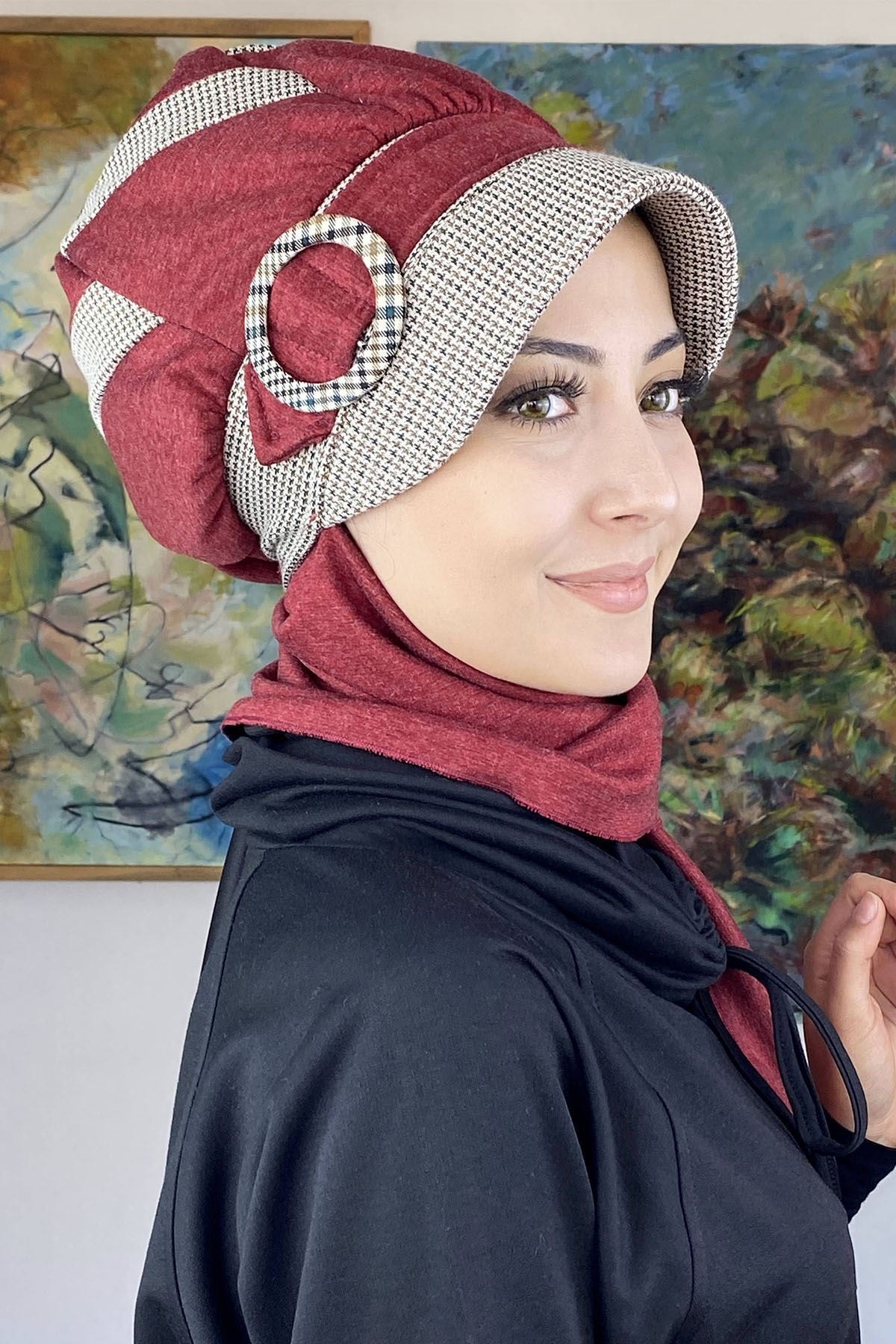 Siyah&bordo Çizgili Püsküllü Simli Siyah Tokalı Atkılı Şapka Şal Siyah&bordo Çizgili Püsküllü Simli Siyah Tokalı Atkılı Şapka Şal 26EKM18 تک سایز