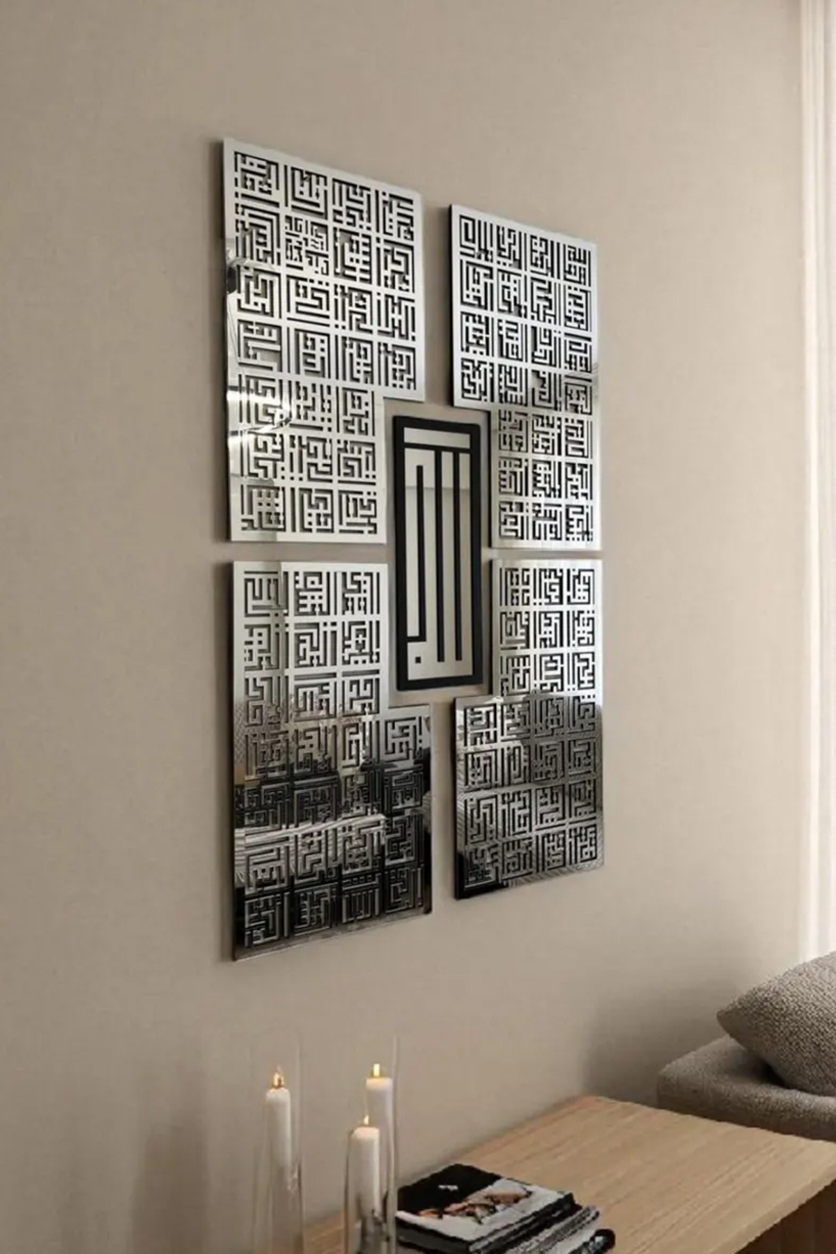 5'li Dua Seti Dekoratif Lüks Pleksi Aynalı Premium Tablo Kufi Yazısı 5'li Dua Seti Dekoratif Lüks Pleksi Aynalı Premium Tablo Kufi Yazısı AW00319 70 x 70