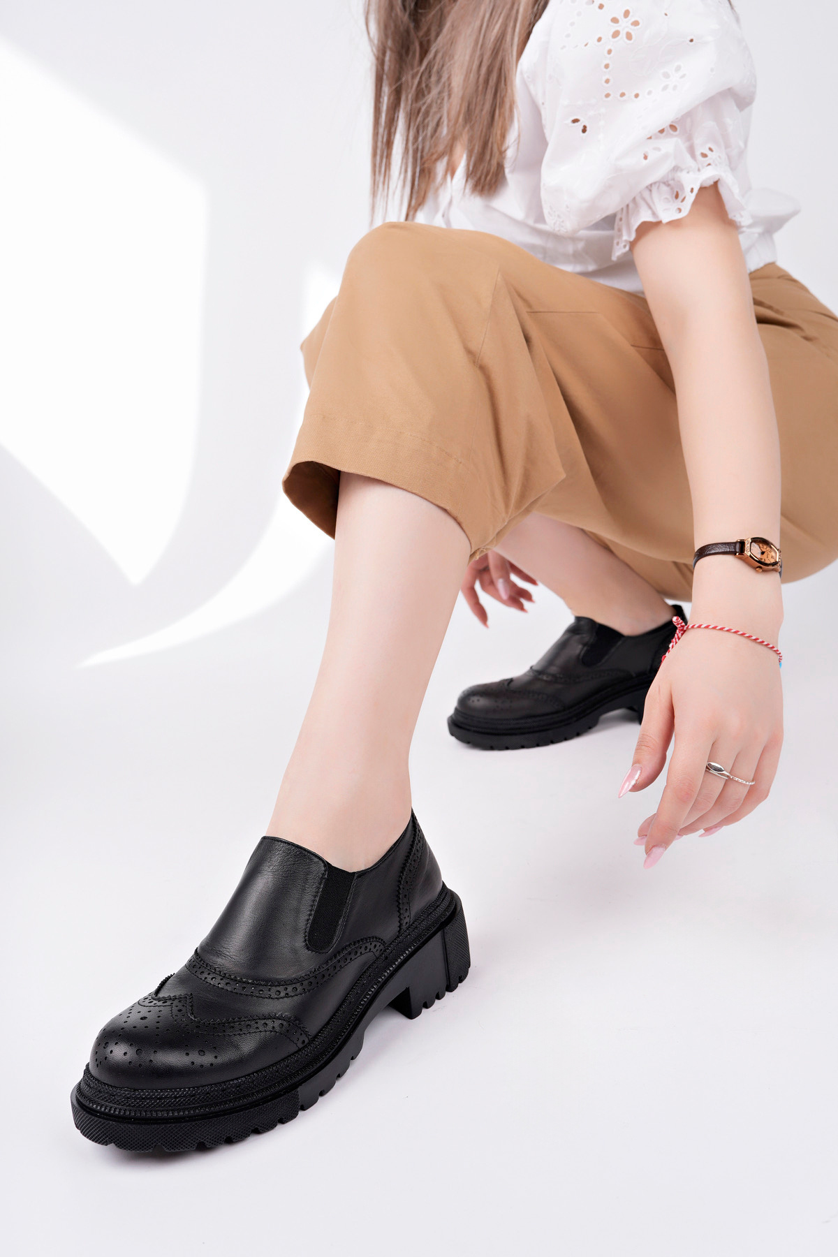 Hakiki Deri Siyah Kadın Günlük Kalın Taban Deri Loafer Ayakkabı TRC-216674 Hakiki Deri Siyah Kadın Günlük Kalın Taban Deri Loafer Ayakkabı TRC-216674 40