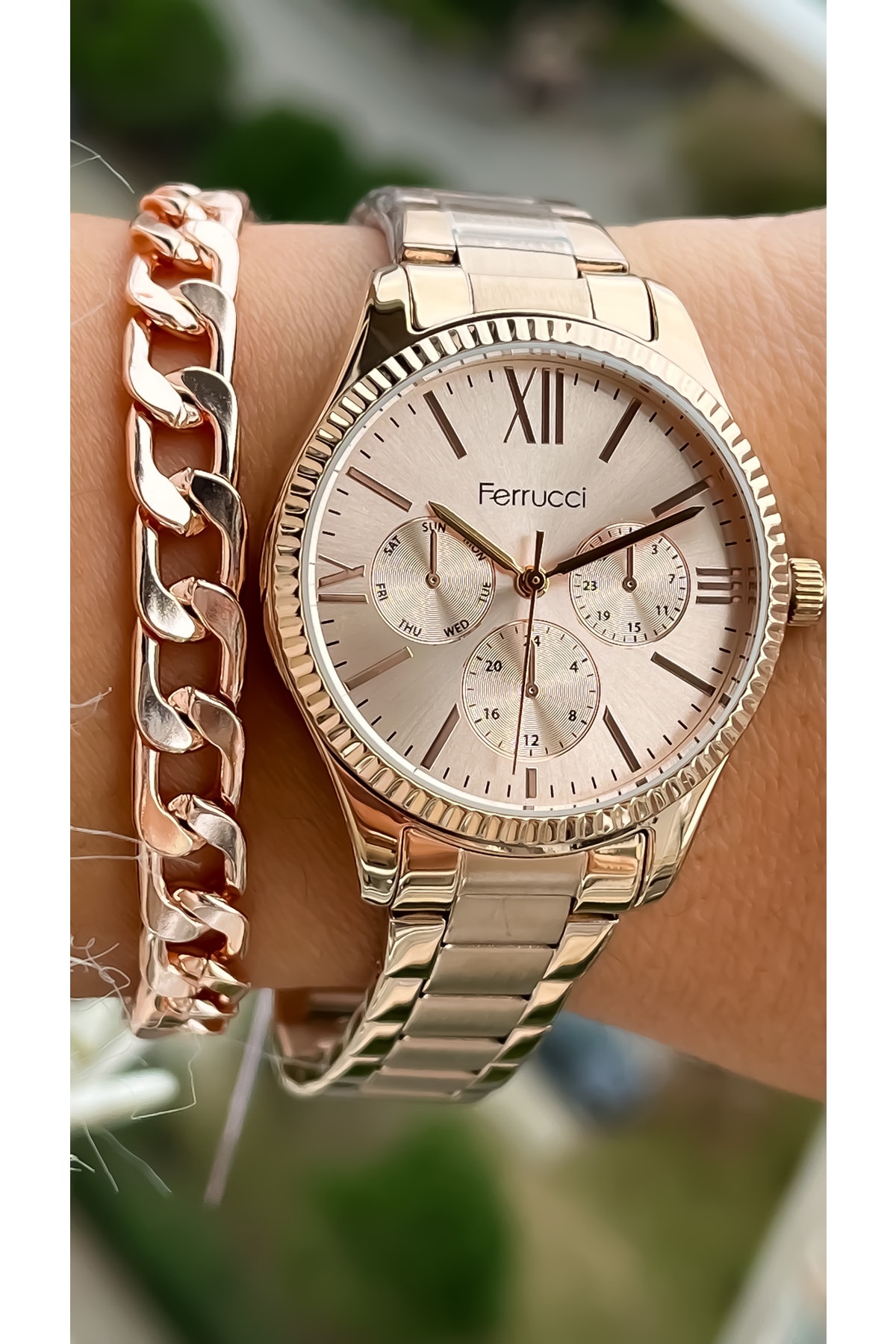 Rose Renk Çelik Kordon Özel Tasarım Kadın Kol Saati Bileklik Rose Renk Çelik Kordon Özel Tasarım Kadın Kol Saati Bileklik FC1041G تک سایز