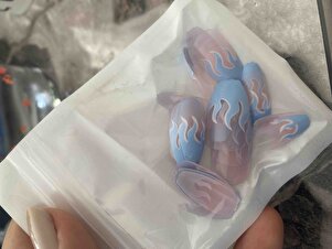 24 Adet Mavi Ateş Desenli Takma Tırnak 24 Adet Mavi Ateş Desenli Takma Tırnak SYB 10 تک سایز