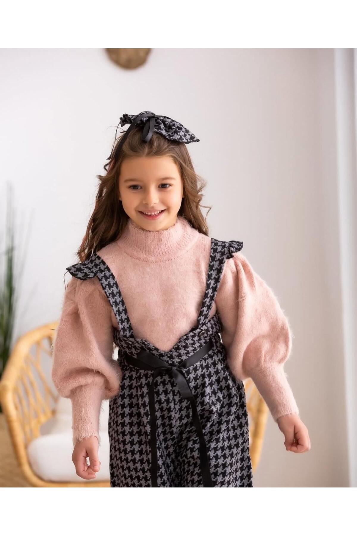 Kız Çocuk Beyaz Triko Kazak Salopet Pantolon Toka 3'lü Takım Kız Çocuk Beyaz Triko Kazak Salopet Pantolon Toka 3'lü Takım 0625-1 10 Yaş