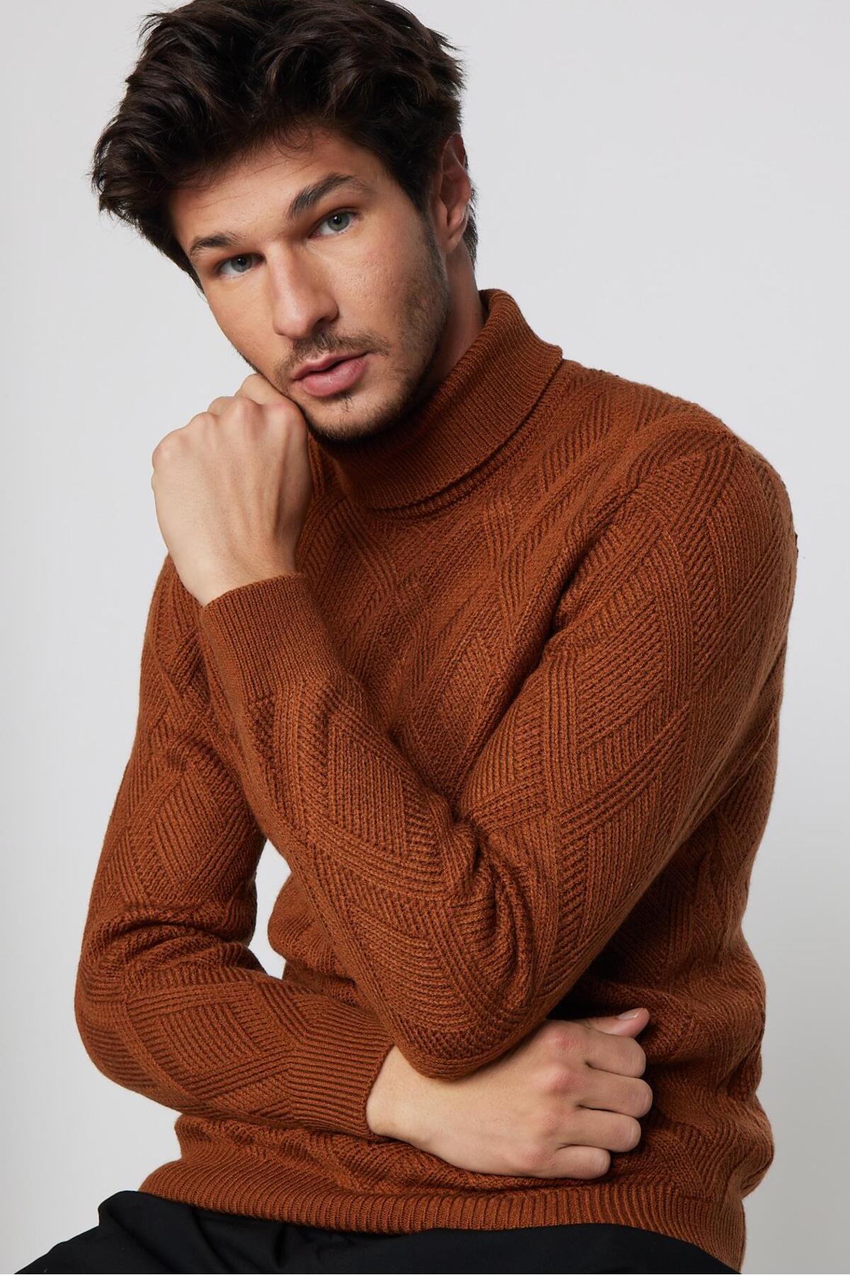 Erkek Slim Fit Dar Kesim Tam Balıkçı Yaka Saç Örgü Desenli Lila Triko Kazak Erkek Slim Fit Dar Kesim Tam Balıkçı Yaka Saç Örgü Desenli Lila Triko Kazak KZ200014-01 2XL
