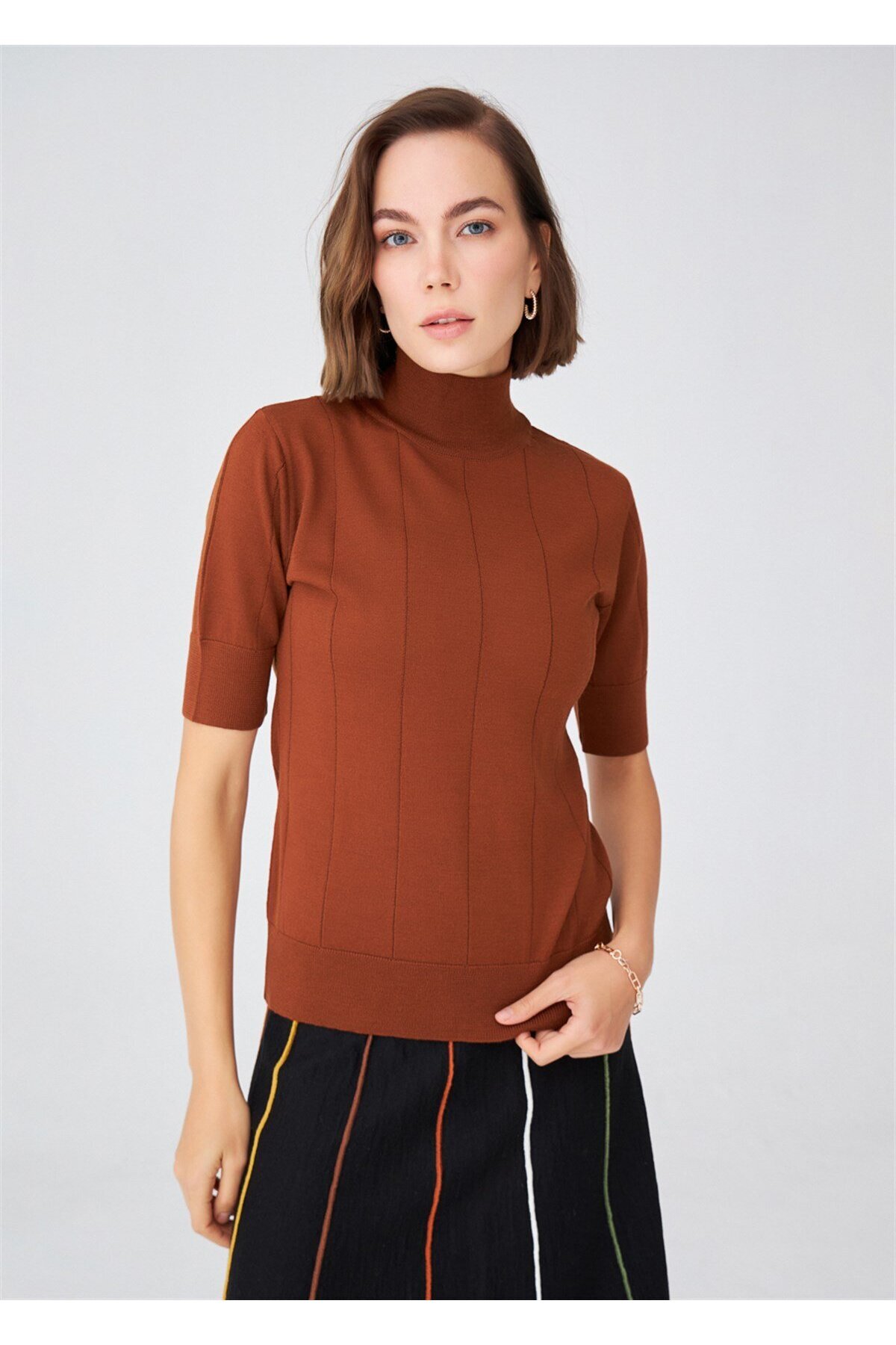 Betty Blouse Balıkçı Yaka Kısa Kollu Ince Basic Kadın Triko Bluz - Kahve Betty Blouse Balıkçı Yaka Kısa Kollu Ince Basic Kadın Triko Bluz - Kahve 12307005 XL