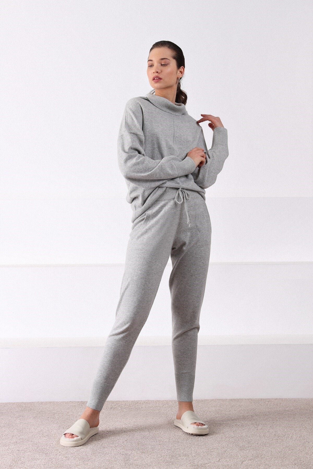 Bol Kesim Kaşmir Karışım Boru Paça Kadın Triko Pantolon - Gri Melanj Bol Kesim Kaşmir Karışım Boru Paça Kadın Triko Pantolon - Gri Melanj 12317006 XL