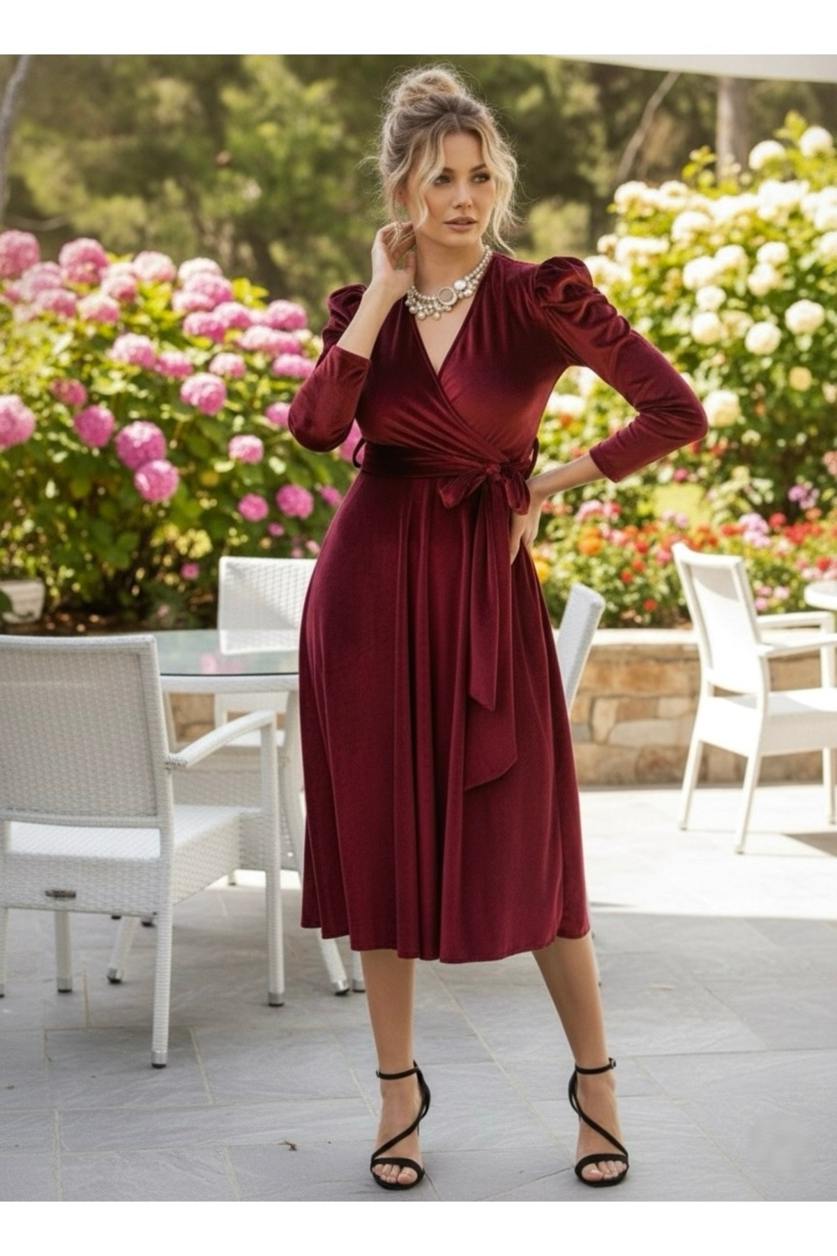 Bal Köpüğü Karpuz Kol Kruvaze Kadife Kuşaklı Büyük Beden Elbise Bal Köpüğü Karpuz Kol Kruvaze Kadife Kuşaklı Büyük Beden Elbise ZKS-0001 5XL