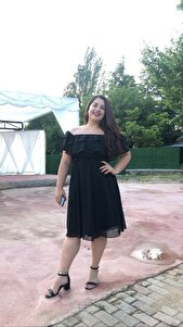 Madonna Fırfır Yaka Siyah Büyük Beden Şifon Elbise Madonna Fırfır Yaka Siyah Büyük Beden Şifon Elbise ZKS-0009 5XL