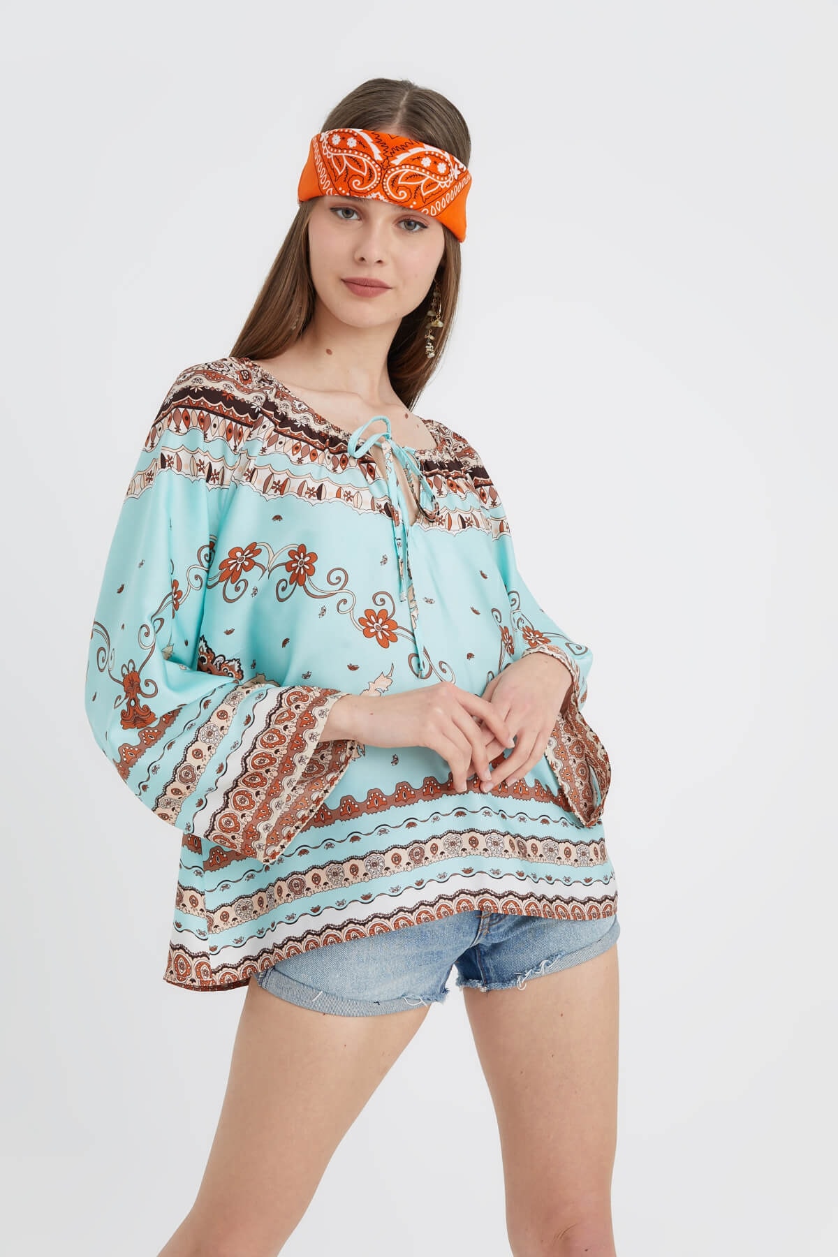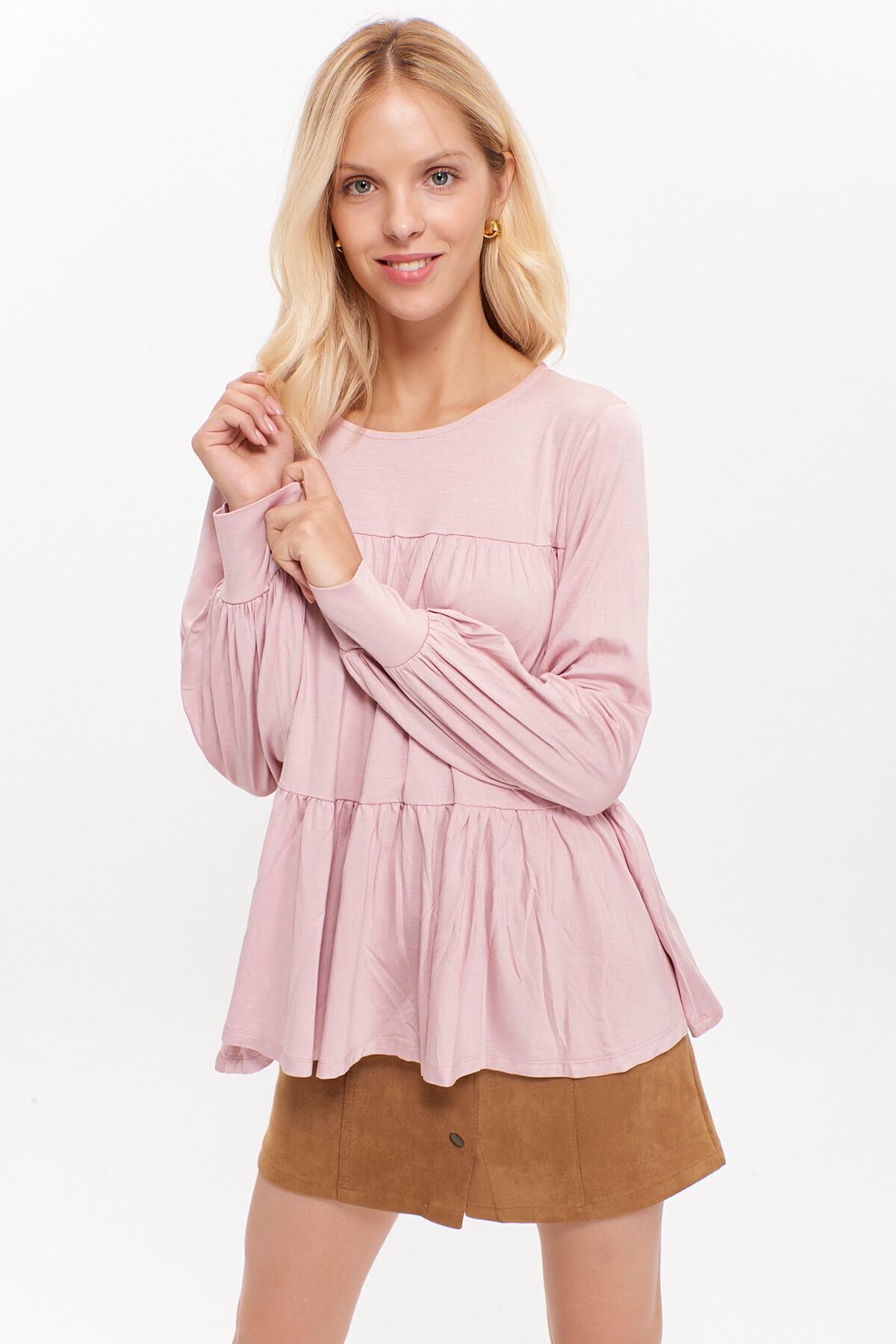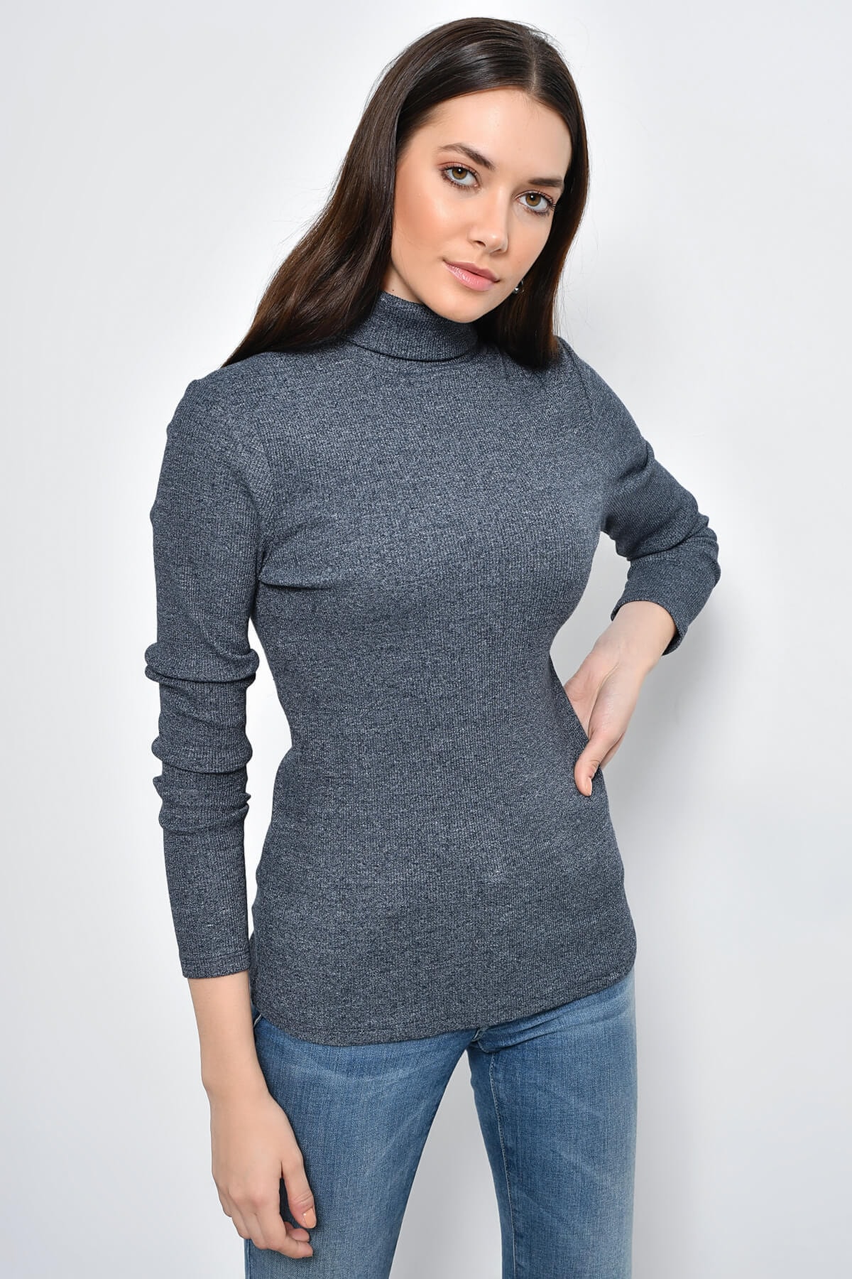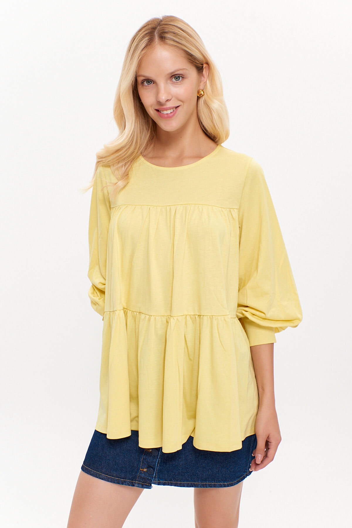 Kadın Mavi Bisiklet Yakalı Kat Kat Büzgülü Örme Bluz Kadın Mavi Bisiklet Yakalı Kat Kat Büzgülü Örme Bluz HN3060 L