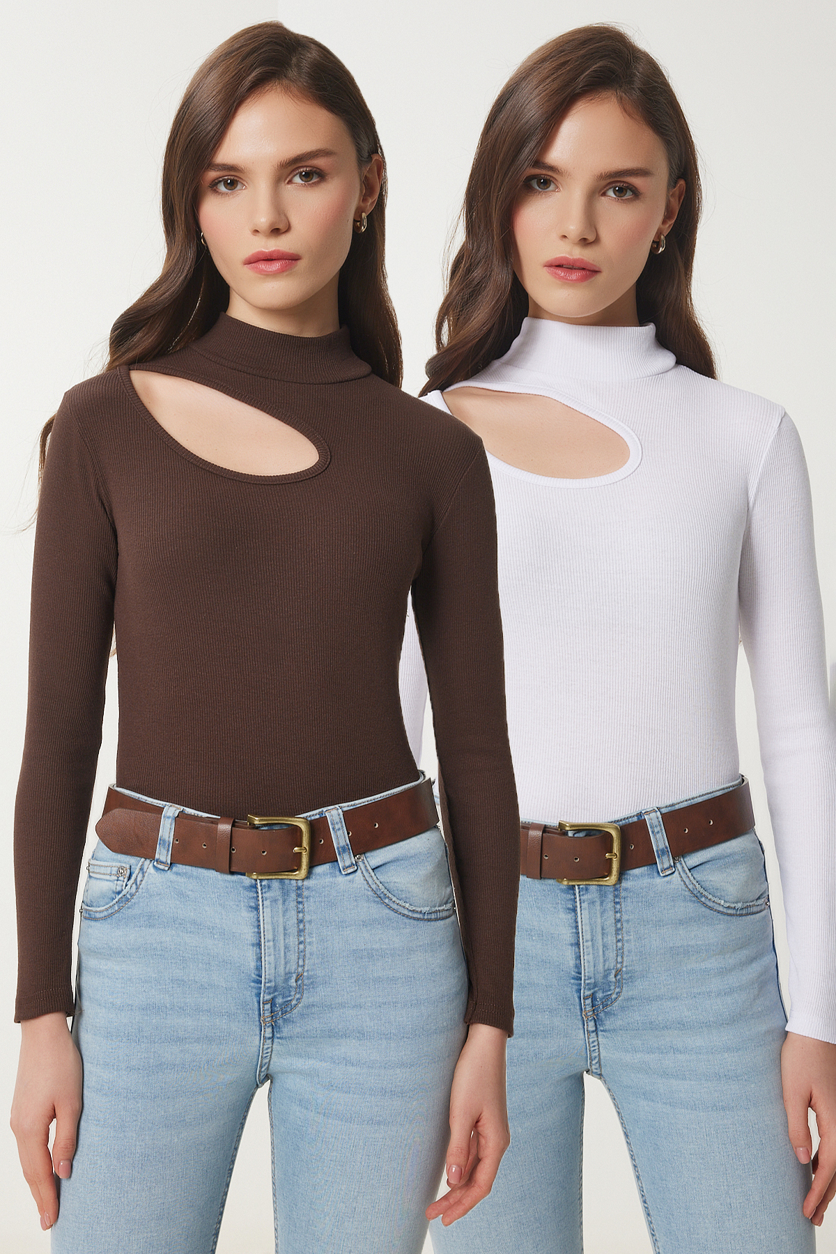 Kadın Kahverengi Cut Out Detaylı Fitilli Örme Bluz GT00065 Kadın Kahverengi Cut Out Detaylı Fitilli Örme Bluz GT00065 M