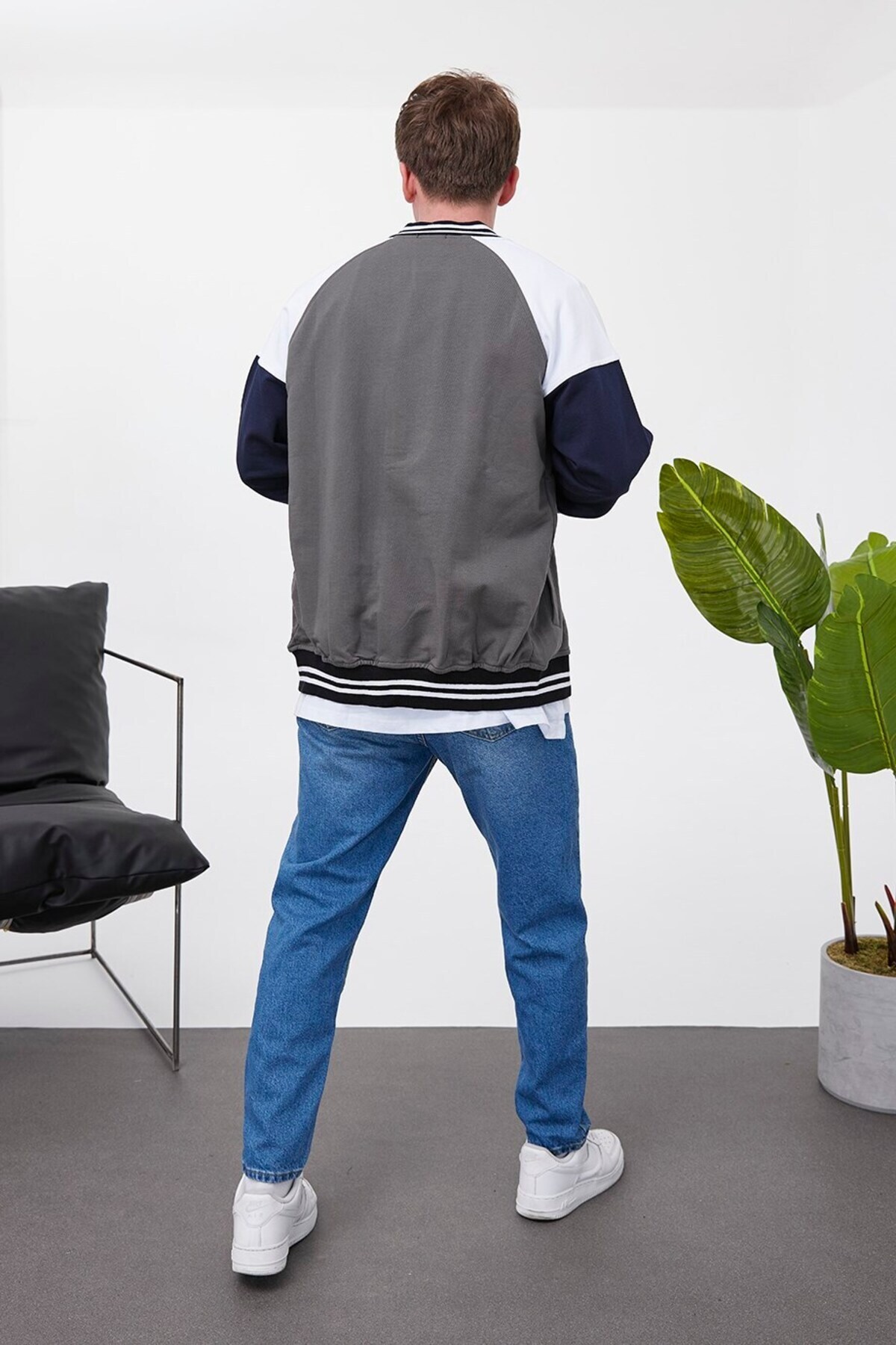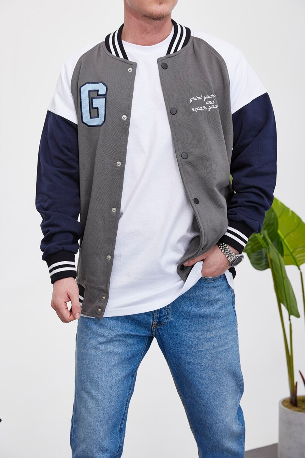 Erkek Erkek Kolej Ceket - G Harf Armalı Füme Günlük Bomber Erkek Erkek Kolej Ceket - G Harf Armalı Füme Günlük Bomber P-001175 2XL