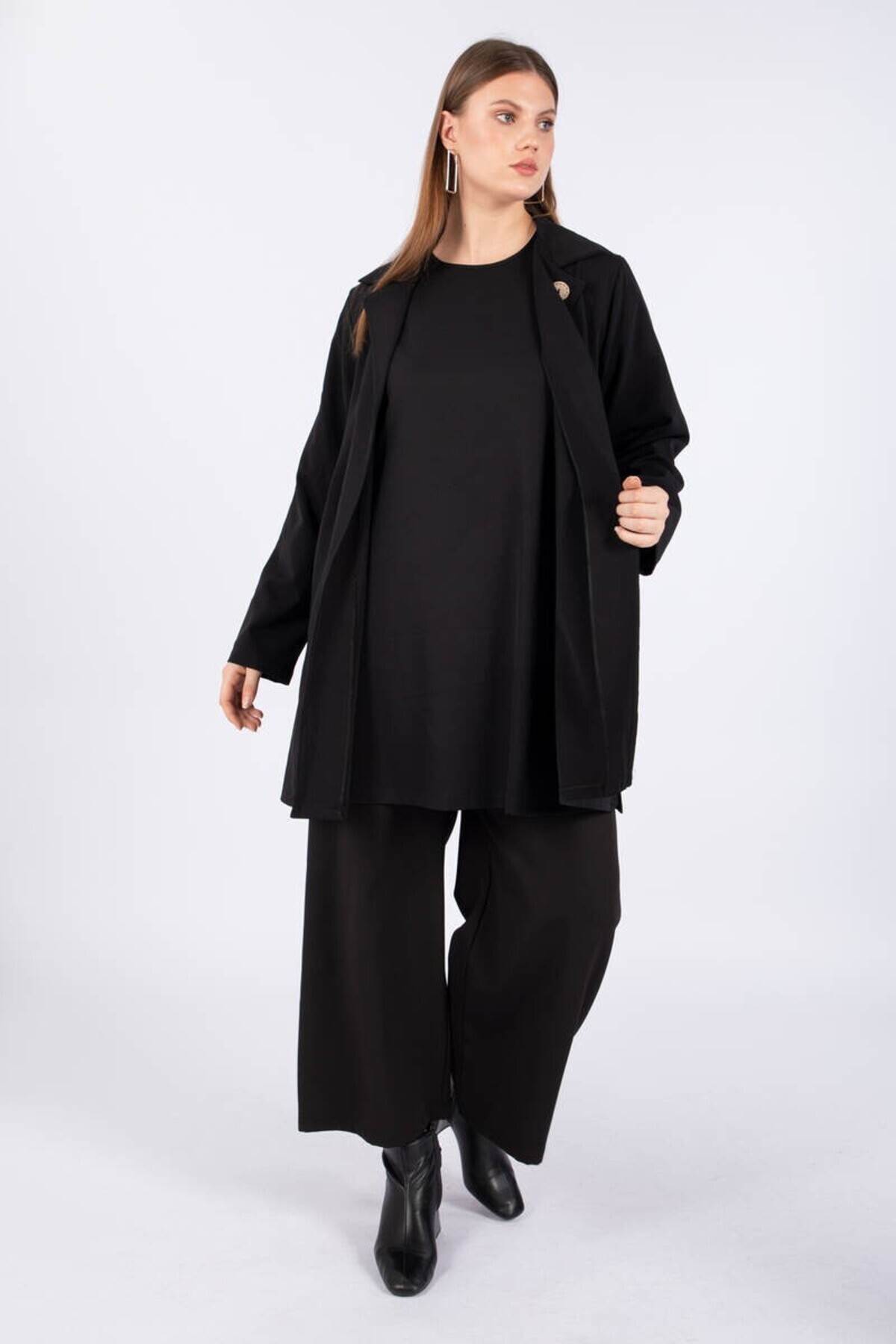 Kadın Büyük Beden Düğmeli Uzun 3'lü Takım Haki/Siyah Kadın Büyük Beden Düğmeli Uzun 3'lü Takım Haki/Siyah C11848 3XL