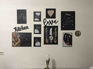 Çerçevesiz Cafe Mutfak Dekoratif Ahşap 11' Li Mdf Kitchen Ve Love Yazılı Tablo Seti Çerçevesiz Cafe Mutfak Dekoratif Ahşap 11' Li Mdf Kitchen Ve Love Yazılı Tablo Seti ÖZC-MDF11D 100 x 100