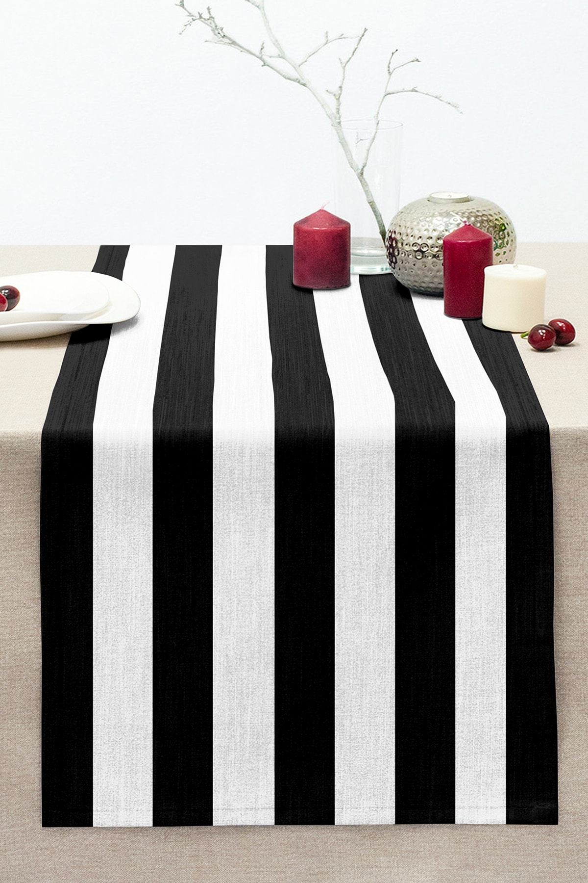 Siyah Beyaz Çizgili Dekoratif Püsküllü Şönil Üçgen Runner Siyah Beyaz Çizgili Dekoratif Püsküllü Şönil Üçgen Runner UcgenSonilRunner-2025 تک سایز