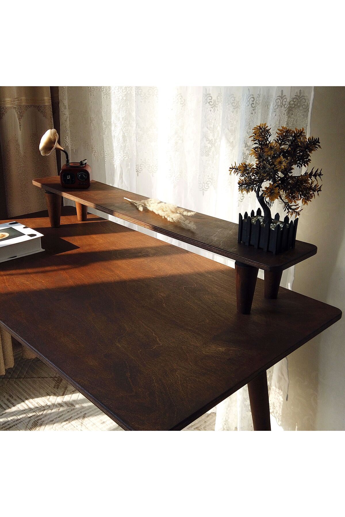 مشخصات فنی Masif Ahşap Çalışma Masası 120x60 Doğal Ahşap Tek Raflı 3 Bölüm Özel Tasarım Uyumlu Görünüm