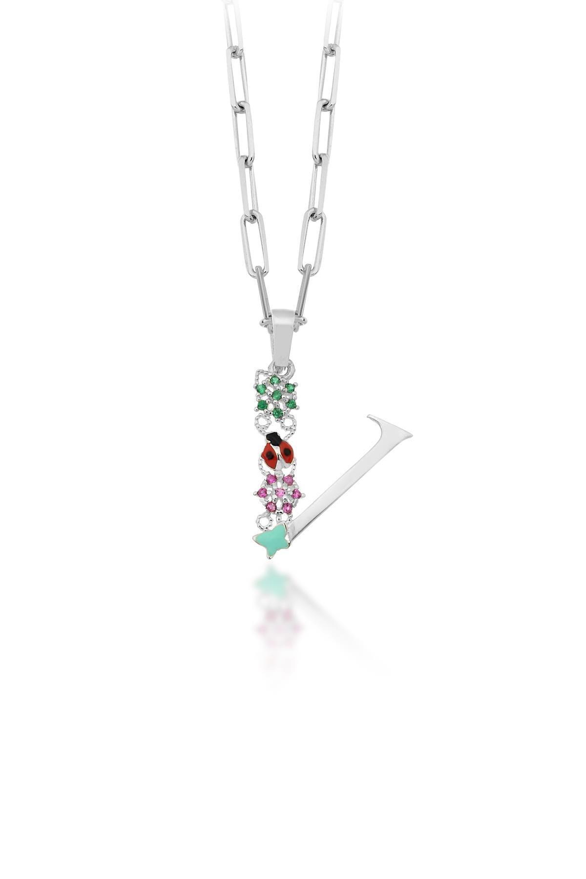 Mineli 'v' Harfli Gümüş Kolye Mineli 'v' Harfli Gümüş Kolye HK-V-0100 50 cm