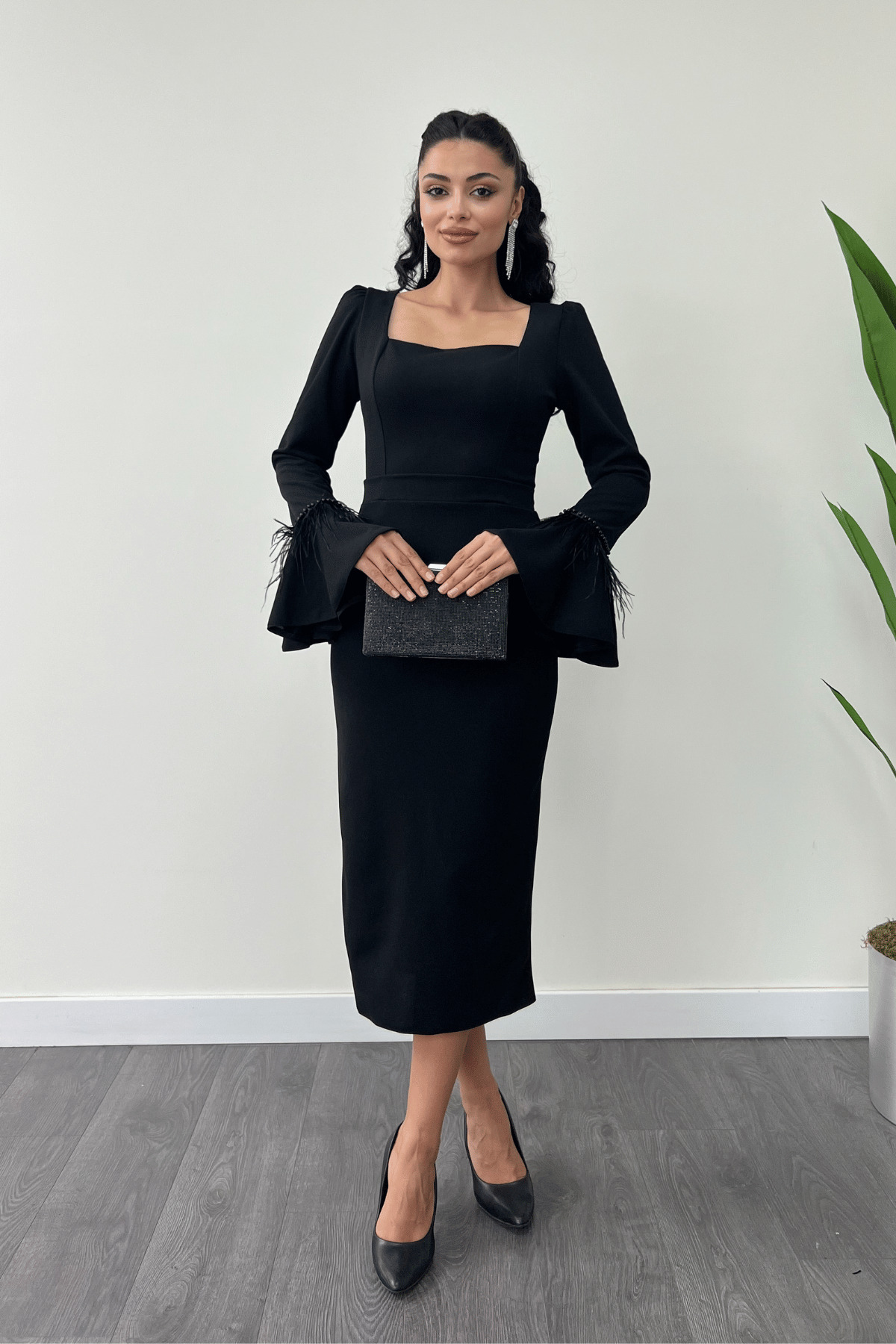 Krep Kumaş Kare Yaka Kalem Elbise - Siyah Krep Kumaş Kare Yaka Kalem Elbise - Siyah GYM-0892 50
