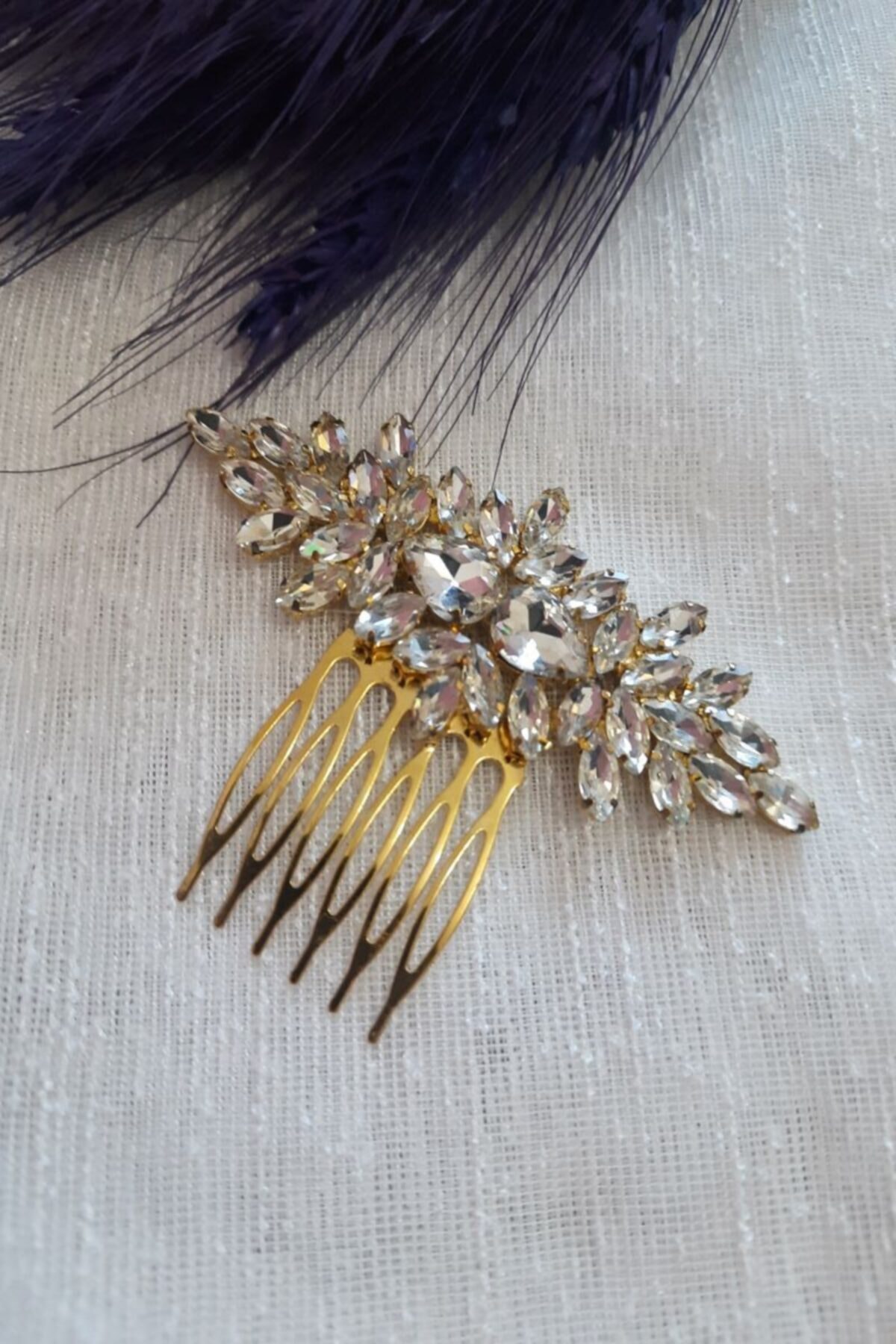 Gelin Saç Aksesuarı Kristal Taşlı Taraklı Saç Tokası – Toka Gelin Saç Aksesuarı Kristal Taşlı Taraklı Saç Tokası – Toka BBWGSAKTTST تک سایز