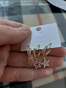 Gold Rengi Yıldız Set Küpe Gold Rengi Yıldız Set Küpe HKP52135819 تک سایز