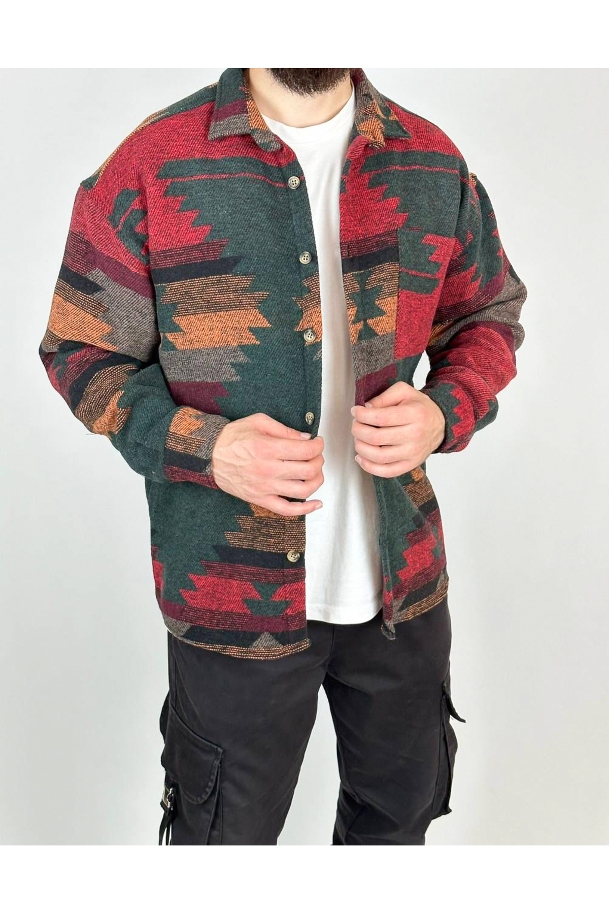 Unisex Gri Siyah Tek Cepli Etnik Desen Oduncu Gömlek Unisex Gri Siyah Tek Cepli Etnik Desen Oduncu Gömlek UGOE-01-ETNIK 2XL