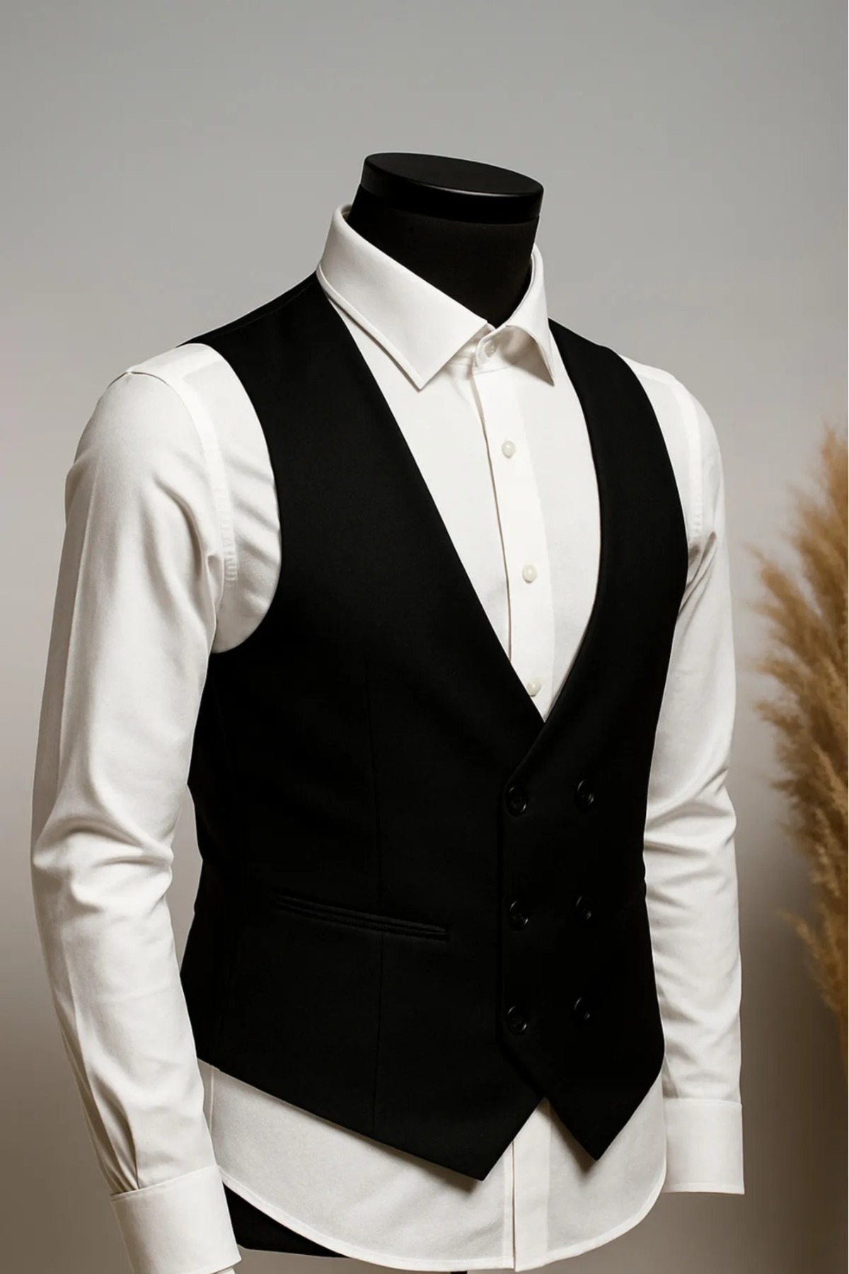 Erkek Siyah Dar Kesim Kumaş Yelek Erkek Siyah Dar Kesim Kumaş Yelek fatella02 6XL