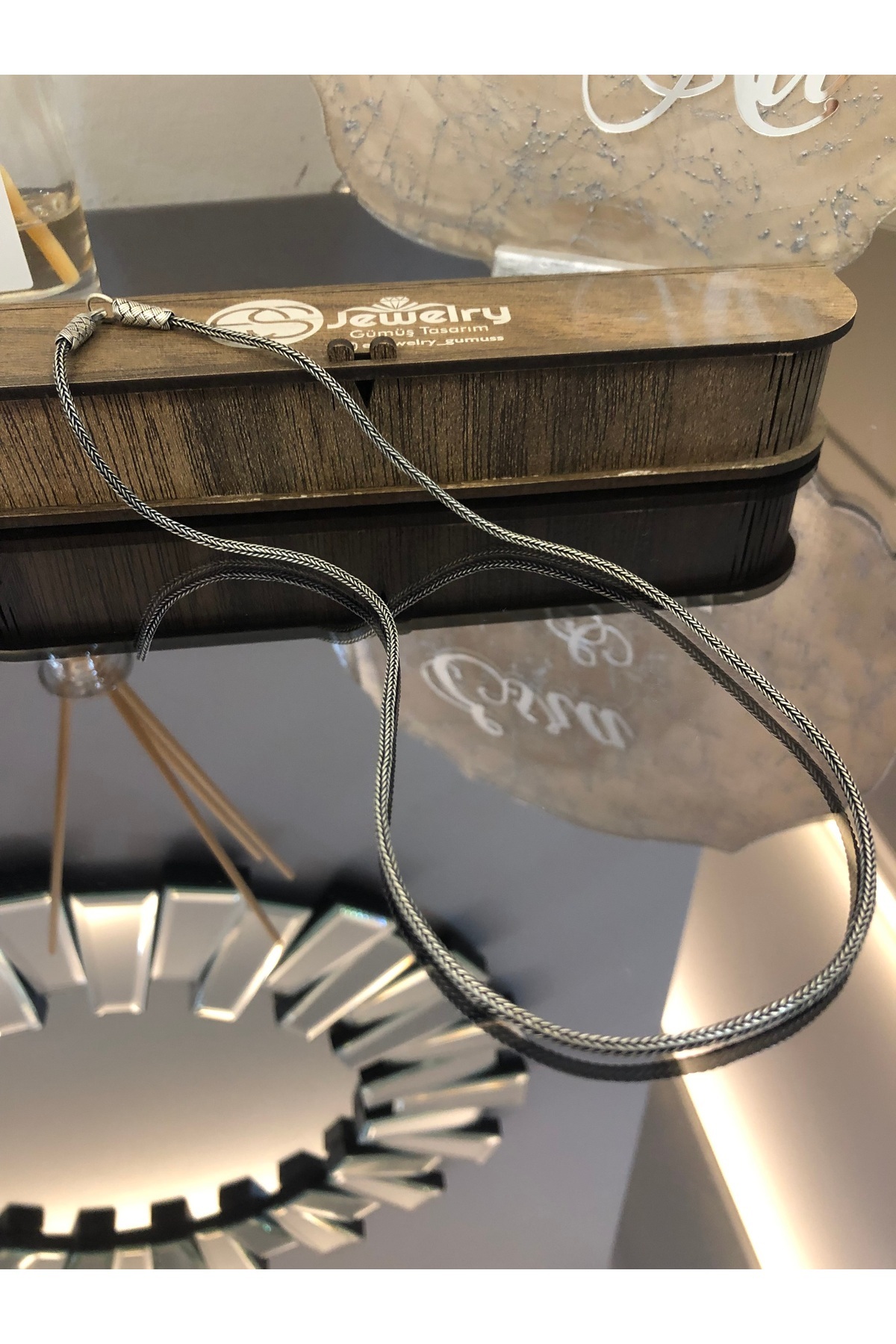 Gümüş Kazaziye Örme Düz Zincir Ince Kolye Gümüş Kazaziye Örme Düz Zincir Ince Kolye ZIN0043TE 65 cm