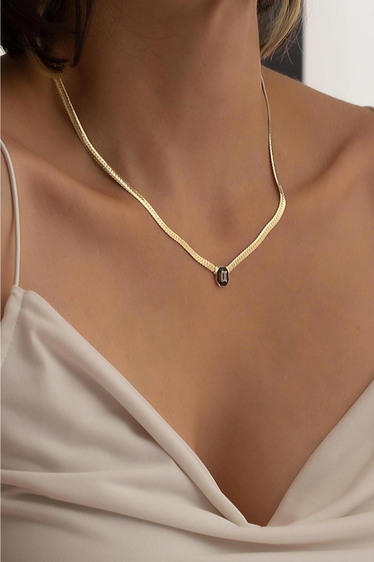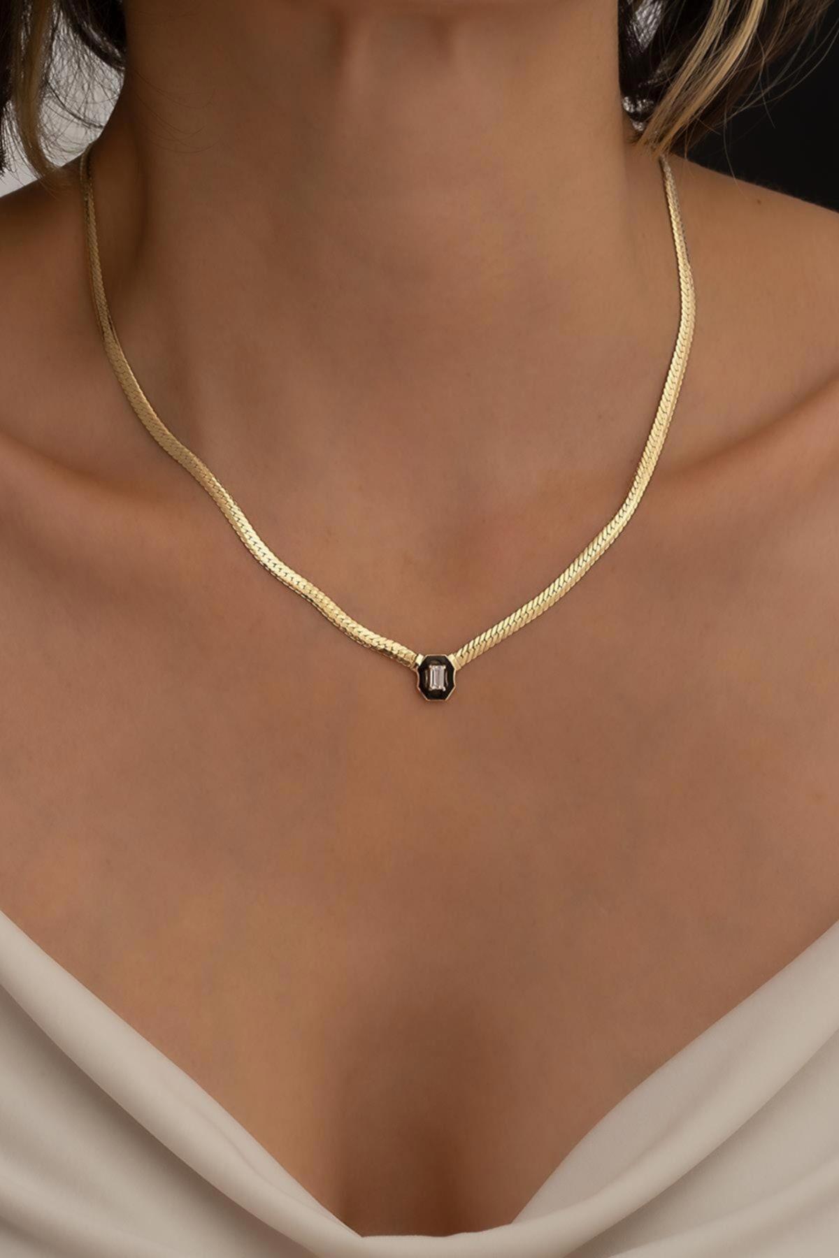14 Ayar Altın Siyah Mineli Baget Kolye 14 Ayar Altın Siyah Mineli Baget Kolye KLYSYHMNLBGT 40 cm