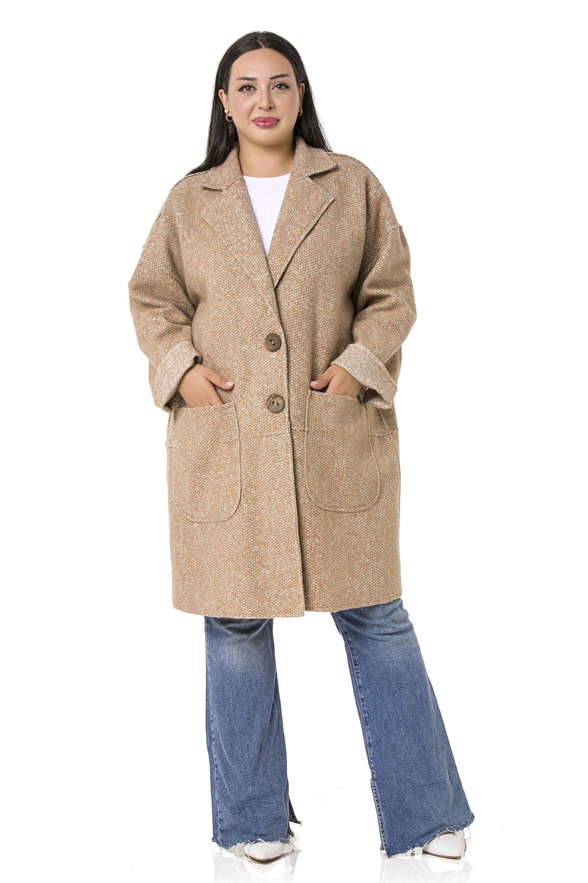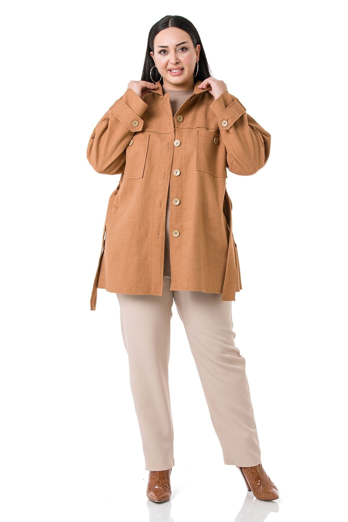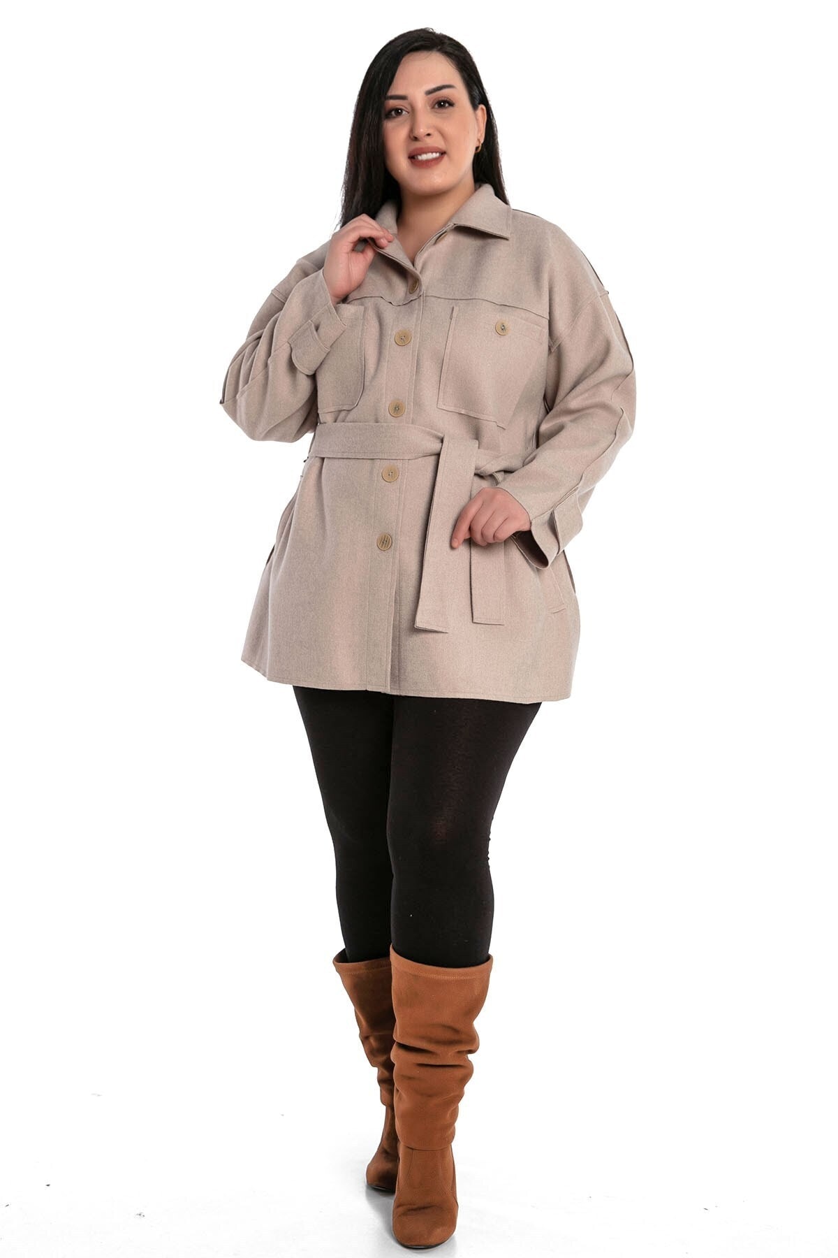 Büyük Beden Robalı Yanları Yırtmaçlı Fleto Cepli Kuşaklı Kaşe Gri Ceket Büyük Beden Robalı Yanları Yırtmaçlı Fleto Cepli Kuşaklı Kaşe Gri Ceket DSN21W6858AD 54