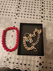Zirkon Taşlı Halka Model B Harfli Ve Nazar Sallantılı Halka Bileklik Zirkon Taşlı Halka Model B Harfli Ve Nazar Sallantılı Halka Bileklik TB0142 M