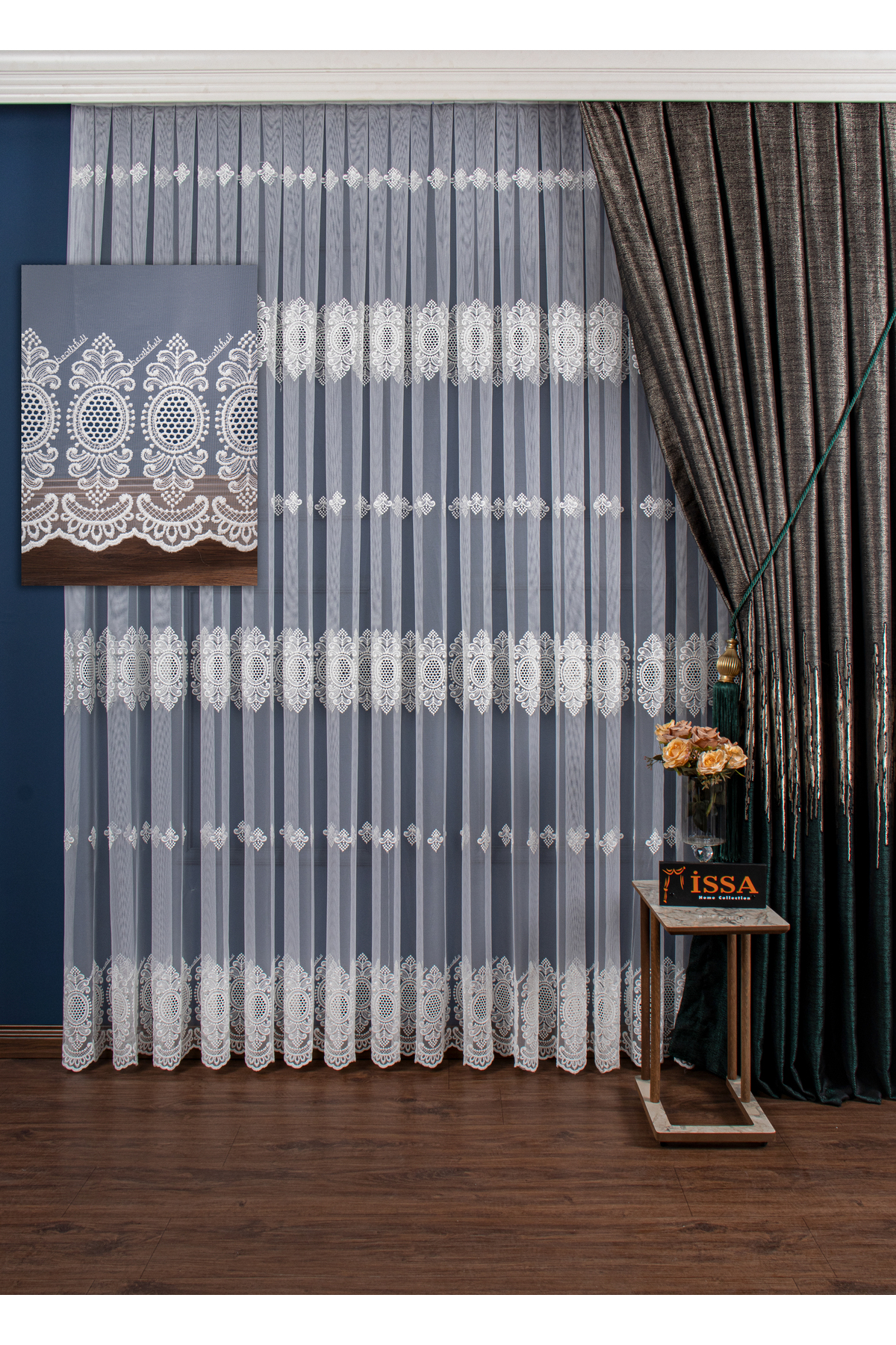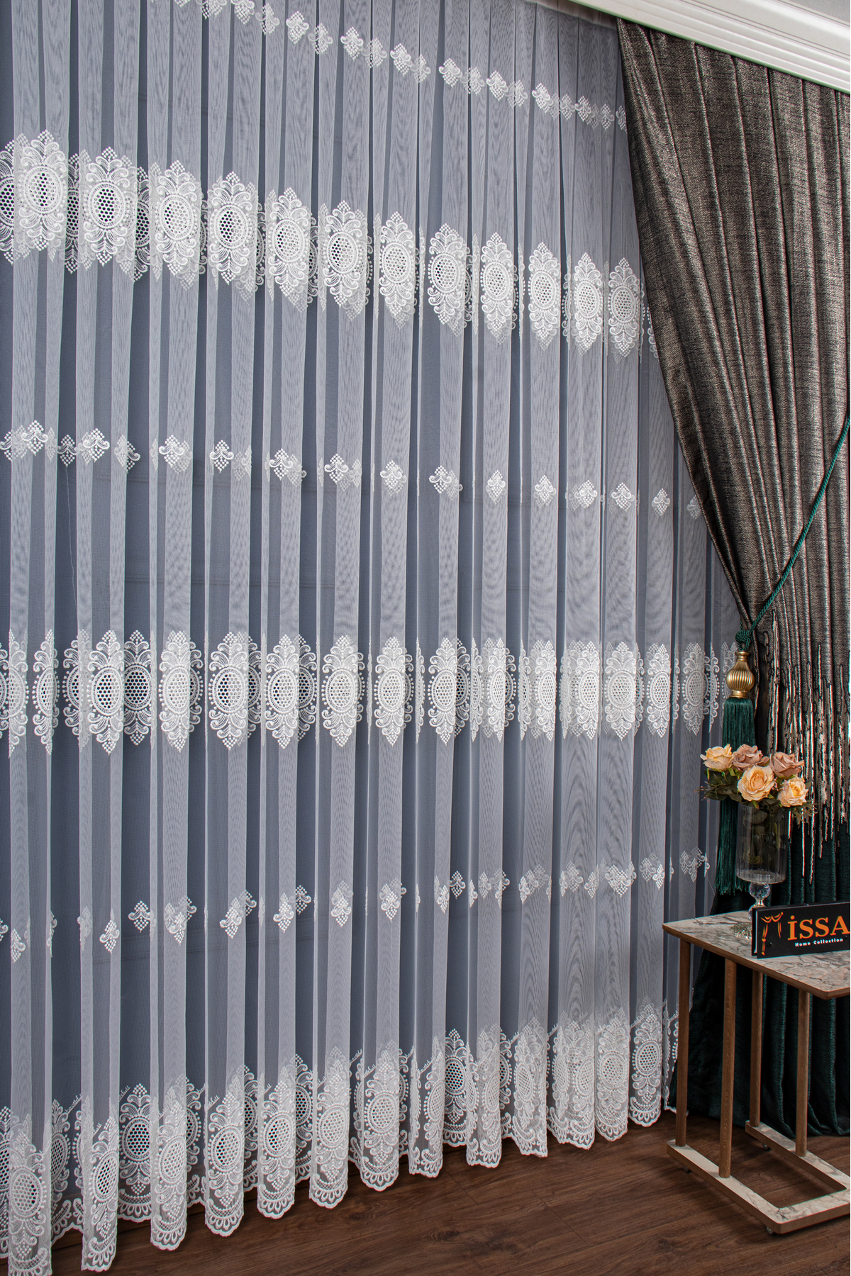 Issa Tül Perde Brode Nakışlı ((orta Pile))(1 x2,5) No 10 Issa Tül Perde Brode Nakışlı ((orta Pile))(1 x2,5) No 10 issa Grek Etek18 125 x 250