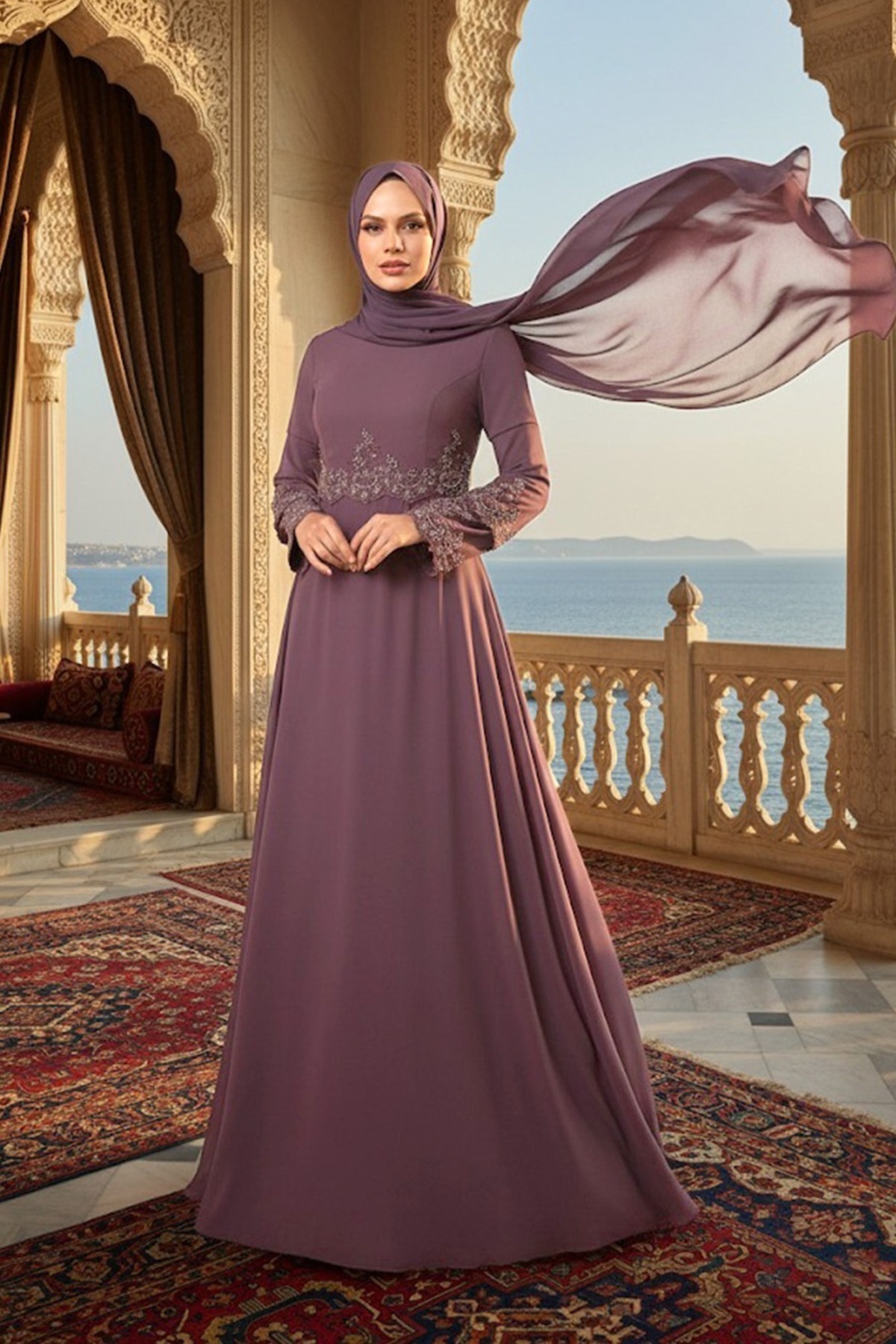 Dantelli Koyu Gül Kurusu Tesettür Abiye Elbise 9118KGK Dantelli Koyu Gül Kurusu Tesettür Abiye Elbise 9118KGK PPL-9118 52