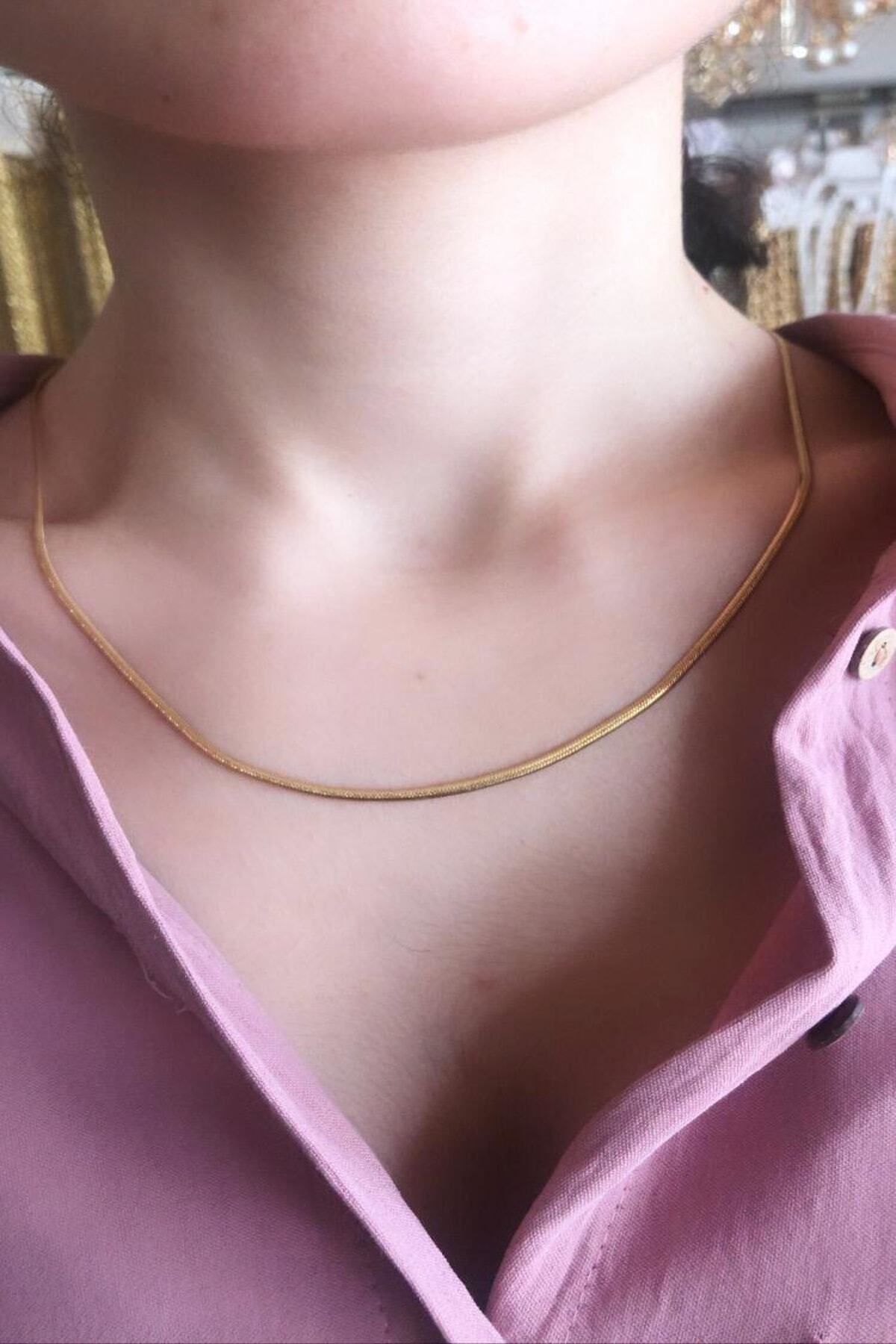 Çelik Gold Ince Italyan Yassı Zincir Kolye Çelik Gold Ince Italyan Yassı Zincir Kolye SN13 50 cm