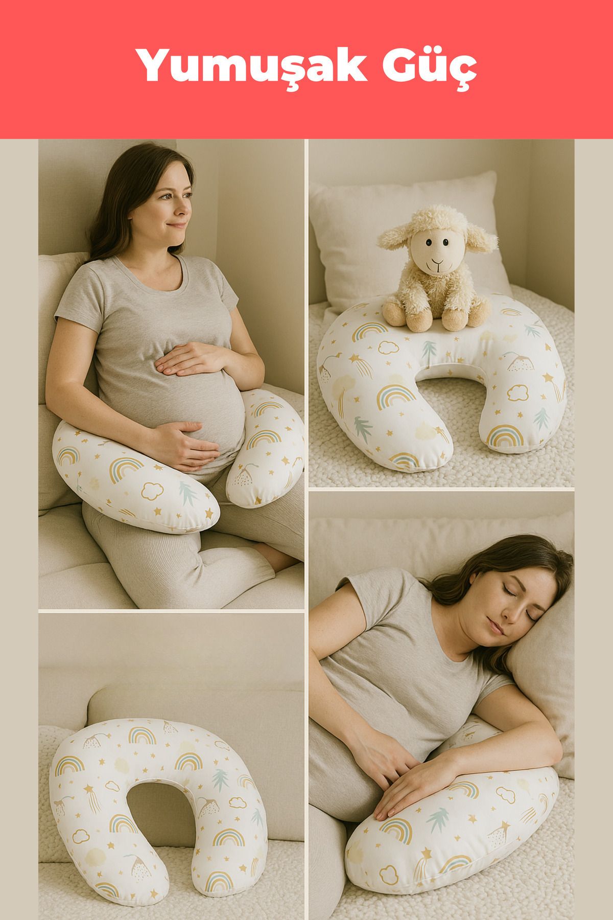 Emzirme Yastığı ve Destek Minderi Gökkuşağı Bej Emzirme Yastığı ve Destek Minderi Gökkuşağı Bej EMZ556 تک سایز