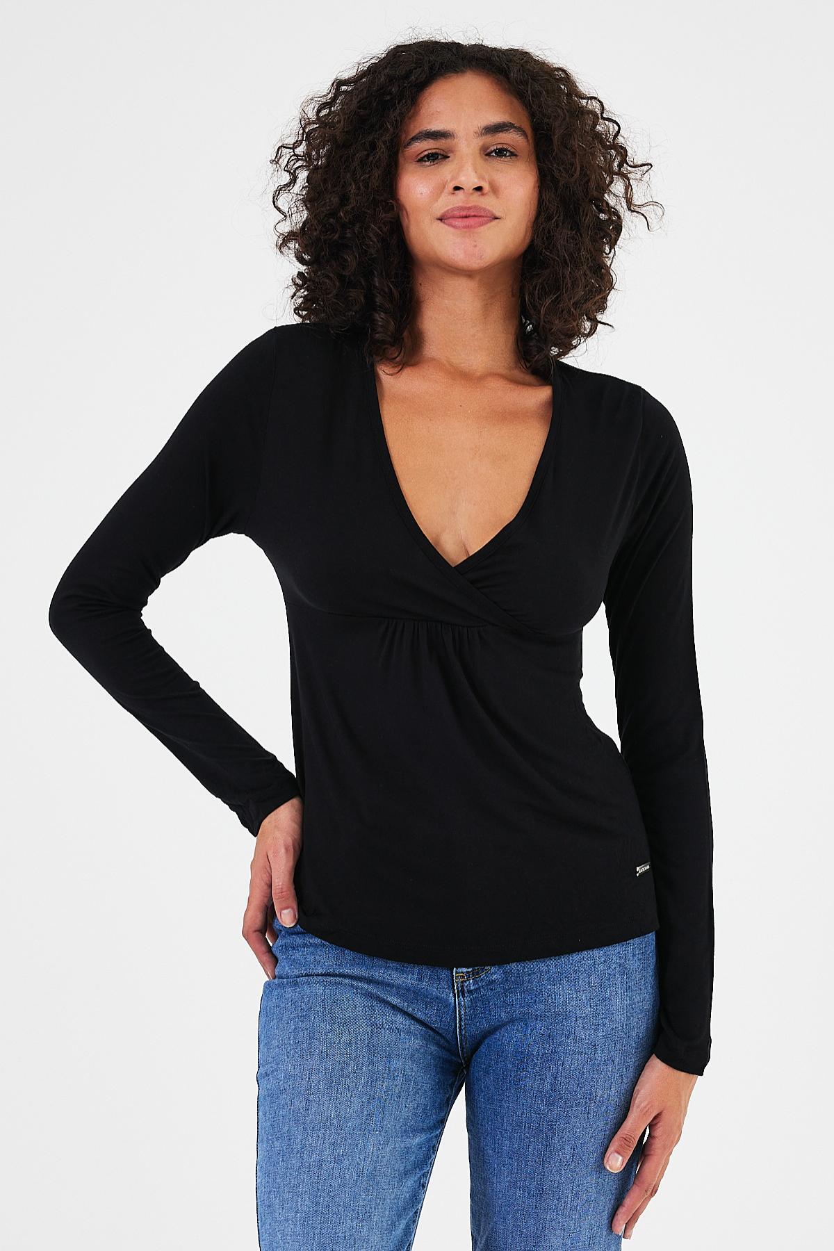 Aspen Siyah V Yaka Organik Pamuk Uzun Kollu Örme T-shirt Aspen Siyah V Yaka Organik Pamuk Uzun Kollu Örme T-shirt 1044-1 XL