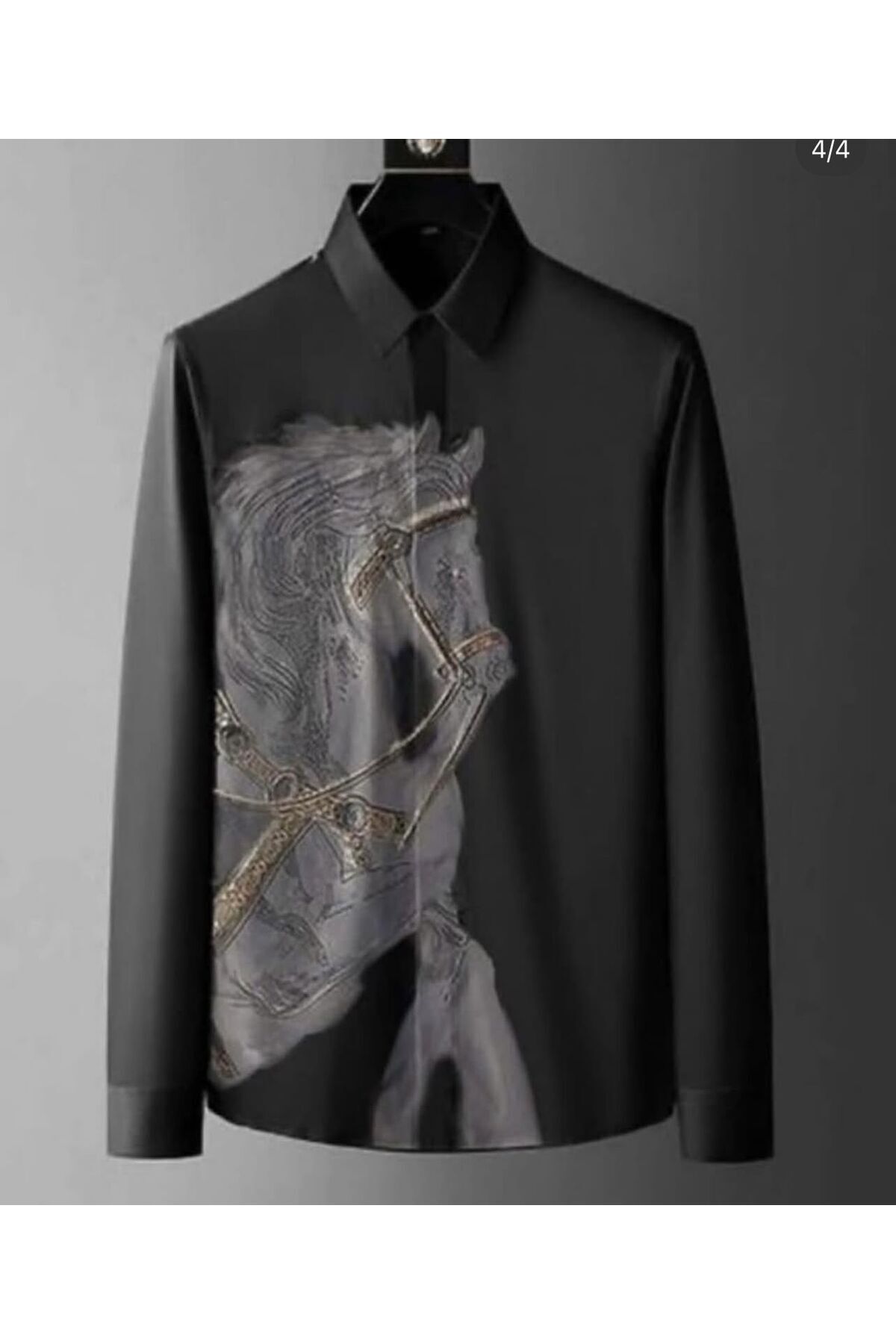 Siyah Üzerine Füme Aslan & Su Yolu Baskı Slim Özel Tasrım Rahat Bol Kesim Erkek Gömlek Siyah Üzerine Füme Aslan & Su Yolu Baskı Slim Özel Tasrım Rahat Bol Kesim Erkek Gömlek BC7255 2XL