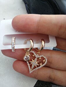 Kadın Kararmaz Kalp Detaylı Zirkon Küpe Set Kadın Kararmaz Kalp Detaylı Zirkon Küpe Set ZYNA-0962 M