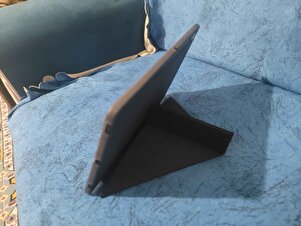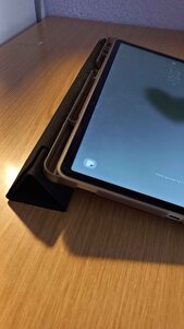 Üründe olumlu yorum olmadığı için kararsız kalmıştım ancak gayet güzel ve işlevli bir ürün. Piyasada çok fazla seçenek yok, seçeneklerin arasında en alınabilir ürün bu gibi. Kapağındaki mıknatıs sayesinde devrilmeden durabiliyor. Diğer kullanımda ise hem video izleyip hem de not alabileceğiniz bir eğim var. Açık renk kir gösterir diye koyu renk tercih etmiştim, çok çabuk tozlandığı için yerinde bir tercih olmuş. Kalem koyma yeri biraz dar gibi, kalemi çıkarırken zorlamamak için kısa kullanımlarda tabletin sağındaki mıknatısa koyuyorum. Kılıf mıknatısı engellemediği için kalem düşmüyor. Ürün genel olarak koruyucu ve sağlam.